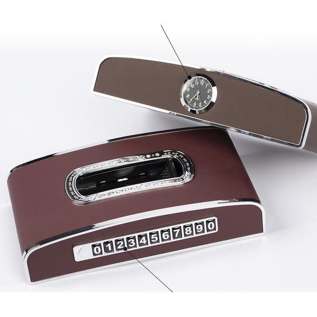 Hộp đựng khăn giấy trên Ô tô có đồng hồ và bảng số điện thoại cao cấp| BẢO HÀ AUTO