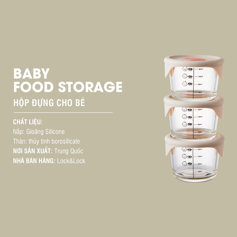 Bộ 3 hộp thủy tinh đựng thức ăn cho bé Lock&Lock có vạch chia 230mlx 3 hộp LLG508S3- Hàng chính hãng