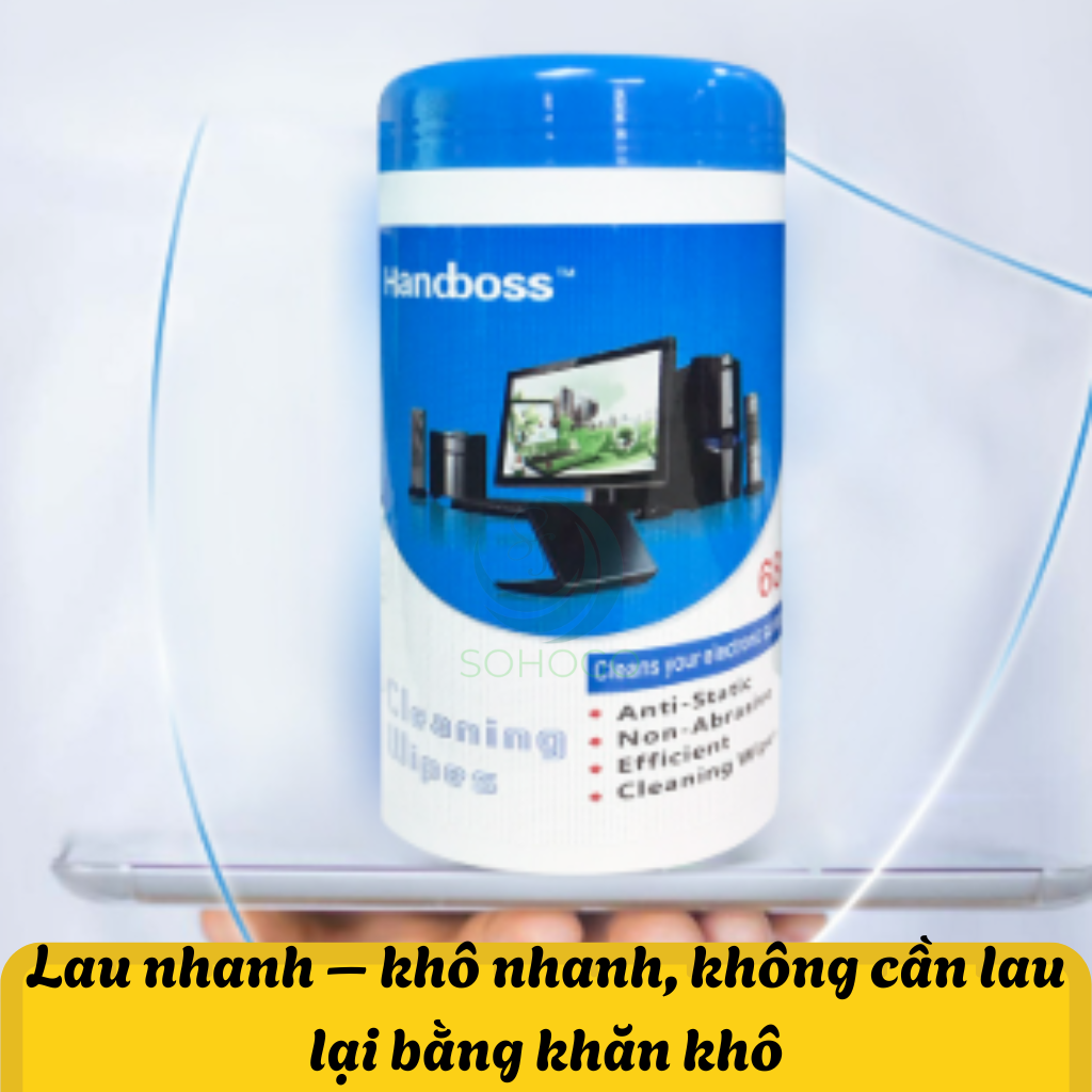 Mô tả sản phẩm: Hộp khăn lau màn hình đa năng 68 miếng là giải pháp tiện lợi để vệ sinh các thiết bị điện tử như điện thoại, laptop, tablet, TV, kính mắt... Với chất liệu không xơ, mềm mại và thấm hút tốt, khăn giúp lau sạch vết bẩn, dấu vân tay, dầu mỡ mà không làm trầy xước bề mặt. Thiết kế hộp tiện dụng, dễ rút từng tờ, bảo quản khăn luôn ẩm, không bị khô nhanh. Phù hợp sử dụng tại nhà, văn phòng hoặc mang theo khi di chuyển. Đặc điểm nổi bật: