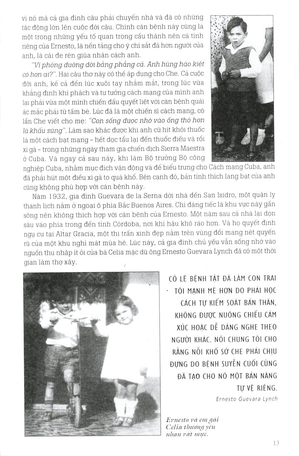 Anh là biểu tượng của hy vọng và niềm tin tuyệt đối. Một tấm gương sáng ngời tinh thần quốc tế vô sản. Một con người thông minh, cương trực không bao giờ chịu khuất phục. Che đã là một bác sĩ, một thầy giáo, nhà báo, phóng viên ảnh, chủ ngân hàng, Bộ trưởng Công nghiệp, một nhà thương thuyết bậc thầy đại diện Cuba tại hầu hết các hội nghị thượng đỉnh trên thế giới, và là một nhà chỉ huy quân sự xuất chúng và là một chiến sĩ can trường. Che còn là một người đàn ông chân chính với một tình yêu tuyệt đẹp.