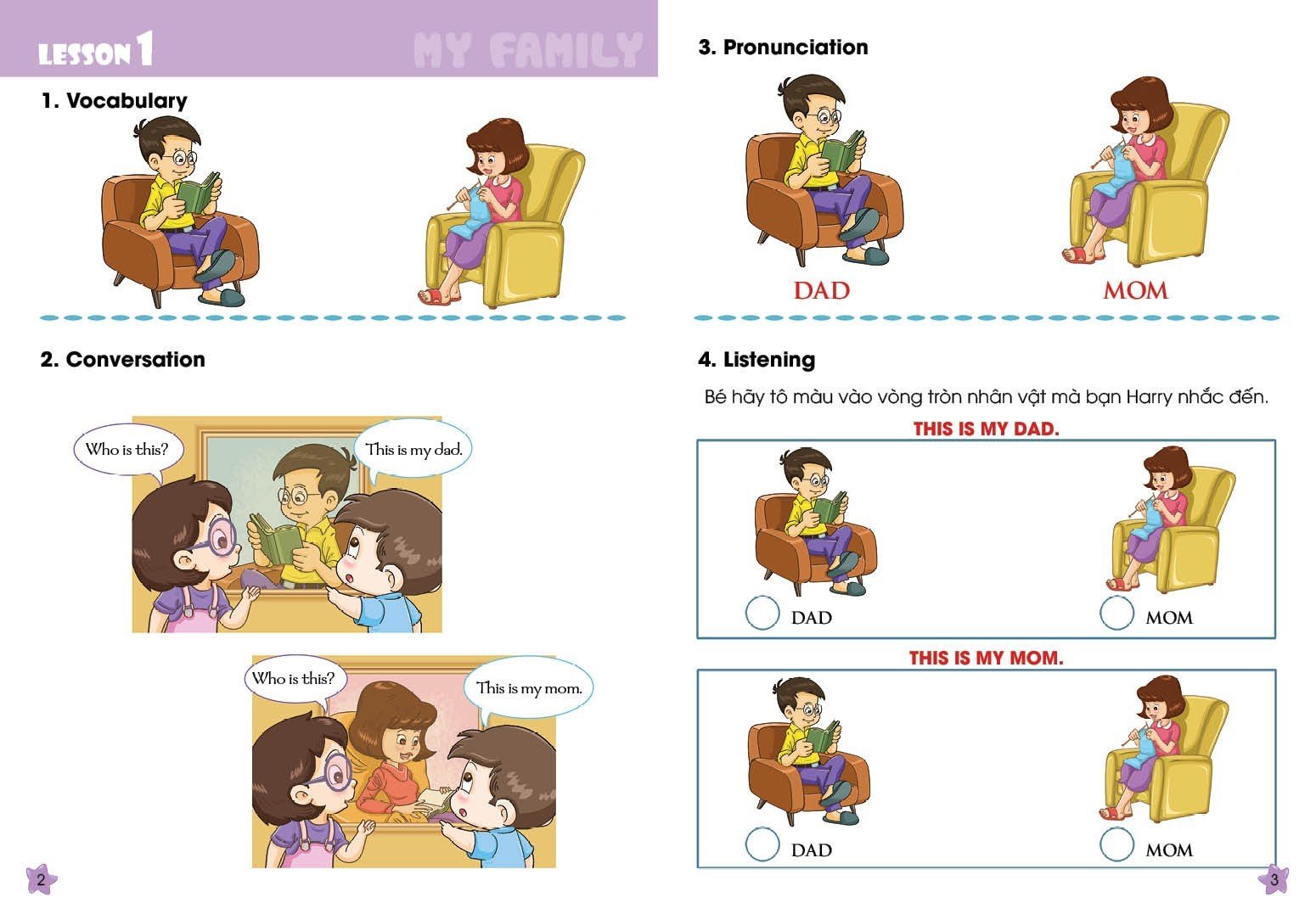 - Phần 6 Coloring (Tô màu) Đặc biệt, đi kèm với bộ sách này còn có link nghe qua giọng đọc thầy giáo bản ngữ, có kinh nghiệm lâu năm trong việc dạy tiếng Anh cho để các bé ôn luyện theo, tạo thói quen phát âm chuẩn ngay từ những buổi đầu làm quen và học tiếng Anh.