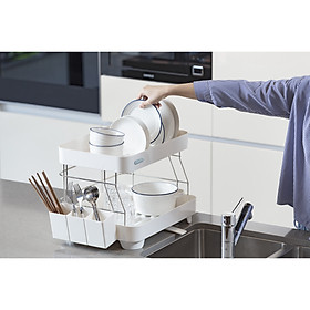 Kệ úp chén đĩa 2 tầng inox 304 Hobby home decor UCD có khay hứng nước Thông tin kỹ thuật - Chất liệu chính: Inox 304 xước không rỉ sét - Có 2 khay nhựa