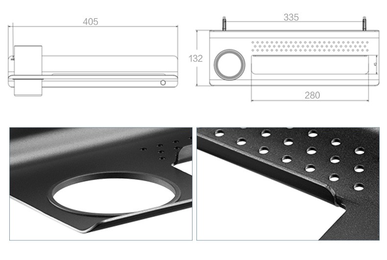 Thiết kế có nắp giúp đựng và chắn bụi. Dính vào tường bằng nắp vít hút chân không chắc chắn, không cần khoan hay đục tường. Phía trên tích hợp một giá gồm các khe
