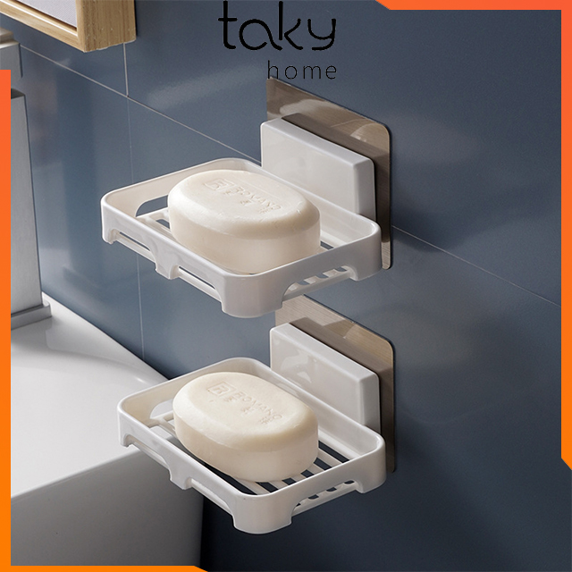 Giá Nhựa Trắng Để Xà Phòng Dán Tường Nhà Tắm Với Miếng 3M Siêu Chắc, TakyHome, Tiện Ích Giúp Cục Xà Bông Tắm Nhanh Khô Và Sạch Sẽ