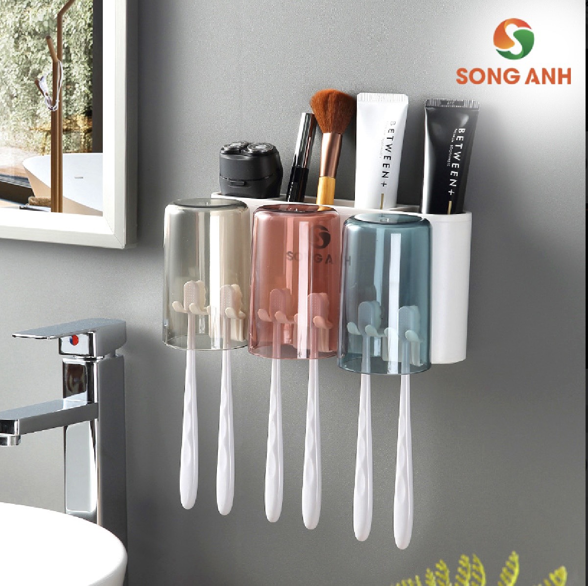 Kệ Để Bàn Chải Kem Đánh Răng 2 Cốc 3 Cốc, Giá Để Đồ Nhà Tắm Song Anh Cao Cấp Không Cần Khoan Tường- Hàng Chính Hãng