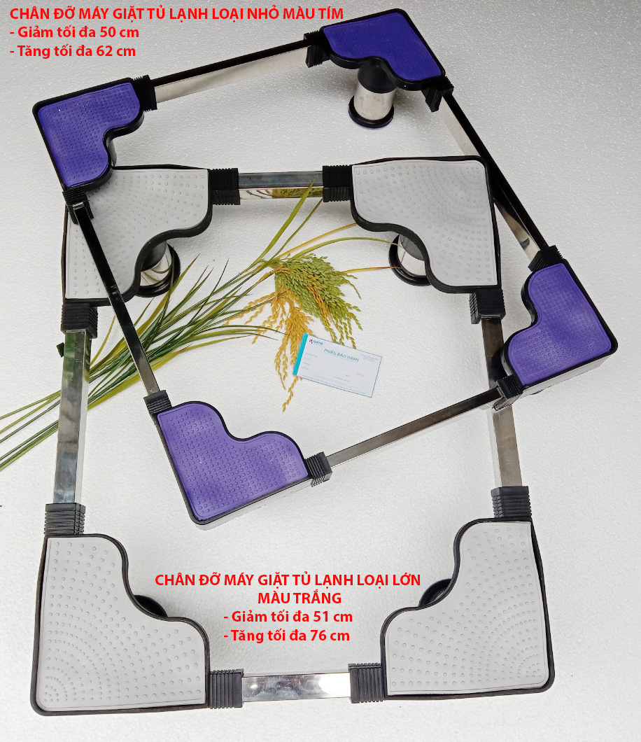 Mua tại TiktokChân Đỡ Máy Giặt - Tủ lạnh Sản phẩm có thể tăng giảm theo kích thước Tủ Lạnh - Máy Giặt Loại lớn tăng giảm trong khoảng từ 53 đến 75 cm, chịu tải đến 150kg Loại nhỏ tăng giảm trong khoảng 50 đến 60 cm chịu tải đến 100kg Sản phẩm chắc chắn, chịu tải trọng cao Sản phẩm làm từ inox liên kết với nhựa