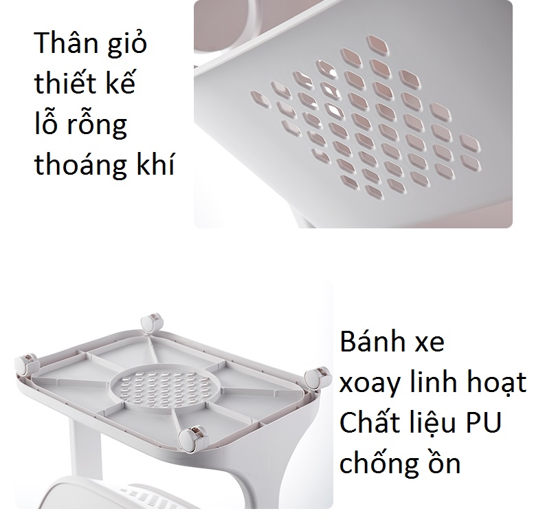 - Giỏ đựng có thiết kế mắt lưới thông thoáng, giúp đồ dùng khô thoáng, không lưu mùi khó chịu