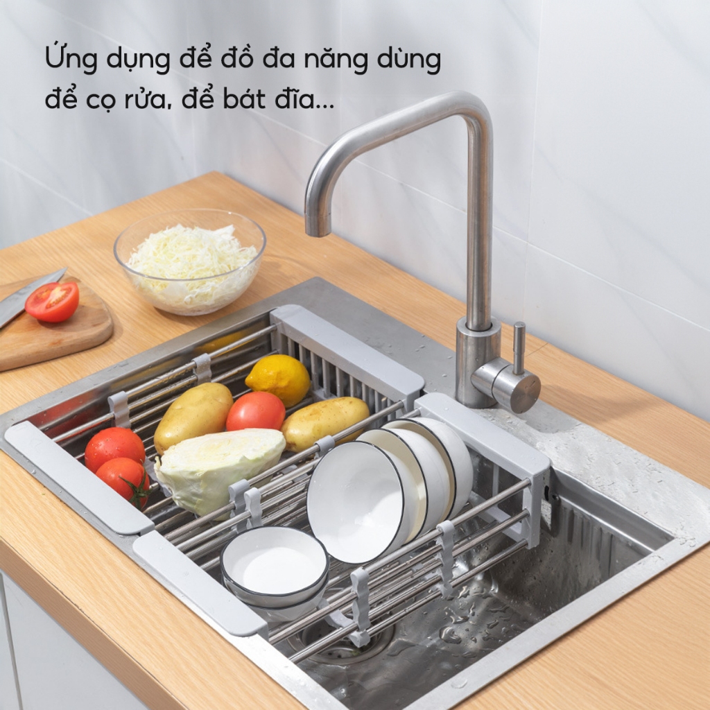 - Kệ gác đồ giúp rửa rau củ quả, rửa chén bát cự kỳ tiện lợi