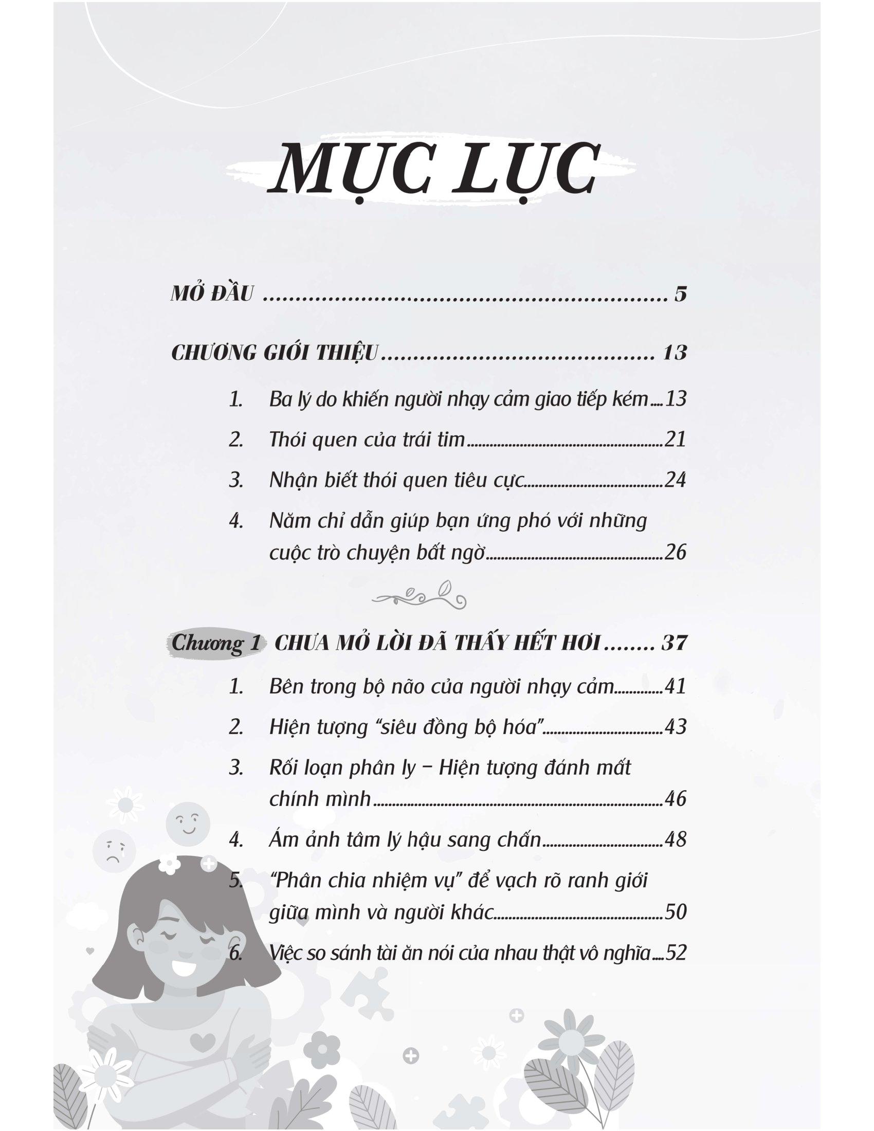 Nếu bạn muốn mở lòng hòa nhập với thế giới bên ngoài, cuốn sách “Kẻ nhạy cảm giữa hành tinh vô cảm” sẽ rất có ích cho bạn. Cuốn sách sẽ đưa ra những lời khuyên trò chuyện hiệu quả để các HSP có thể dễ dàng cất lên tiếng của bản thân, bao gồm cách “lắng nghe thay vì cố gắng ép m.ình nói” hay “phớt lờ những người chỉ biết nói những lời gây tổn thương”. Đặc biệt là lời nhắn “Đừng cố gắng để được mọi người yêu thích”. Đây là cuốn sách dành riêng để hỗ trợ những tâm hồn nhạy cảm, những người có xu hướng tự ti và nghĩ rằng m.ình không có giá trị; thêm yêu bản thân và tự tin vào chính m.ình.