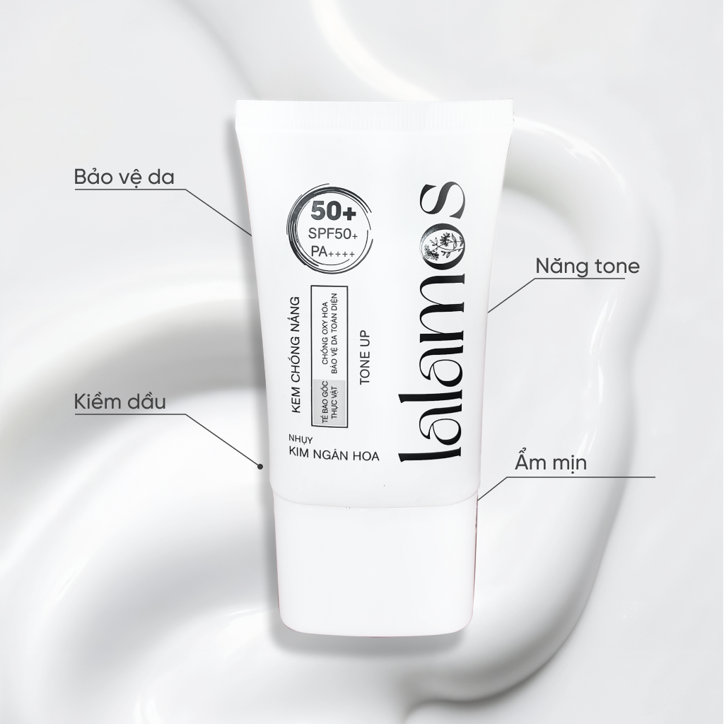 Kem Chống Nắng Lalamos Nhụy Kim Ngân Hoa White Tone-Up SPF 50+ PA++++ 50ml Là sản phẩm lý tưởng để bảo vệ làn da khỏi tác hại của tia UV. Với chỉ số chống nắng