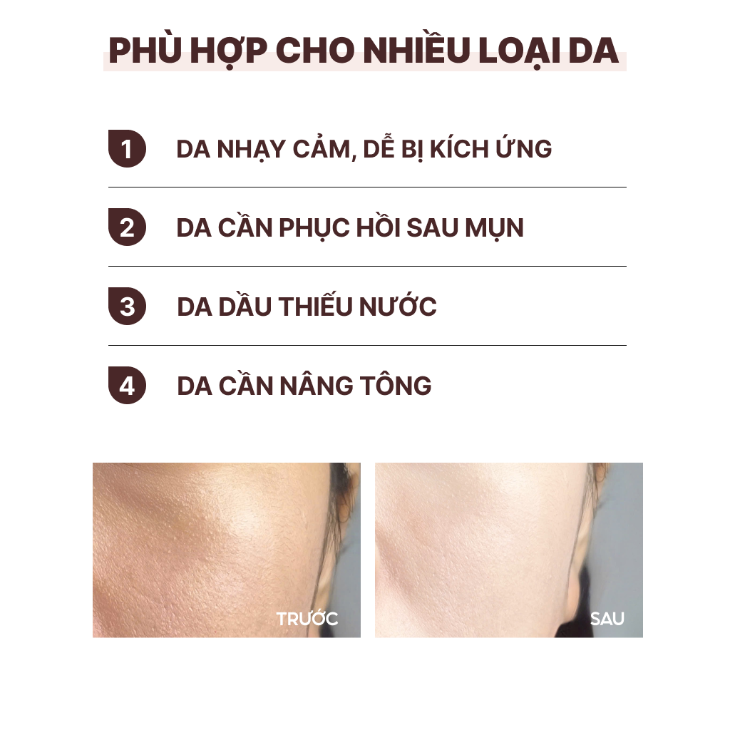 Thẩm thấu nhanh: Kết cấu kem mỏng nhẹ, khô thoáng, không gây bí da, phù hợp với cả da nhạy cảm.