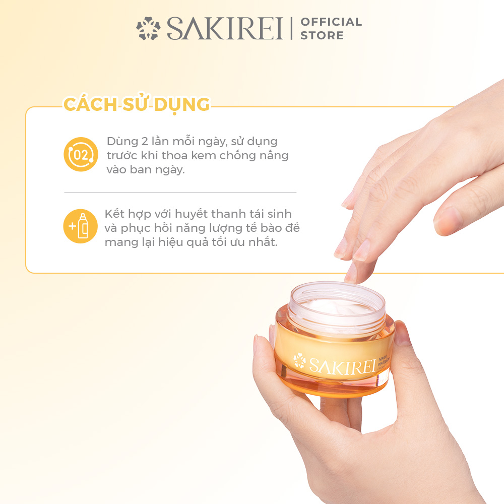 Sakirei NMN Revitalize Cream Sakirei NMN Revitalize Cream với công thức chứa NMN, tế bào thực vật, Tranexamic Acid, Niacinamide,... có tác dụng dưỡng da toàn diện như cấp ẩm, dưỡng sáng, giảm thâm sạm, khắc phục các dấu hiệu lão hóa.