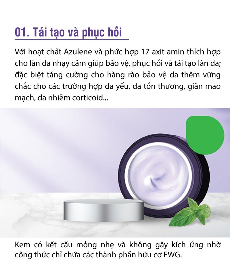 là dòng kem siêu phục hồi da tổn thương sau laser, lăn kim… Sản phẩm có khả năng thúc đẩy quá trình tái tạo da tự nhiên sau điều t rị thẩm mỹ. Giúp hết