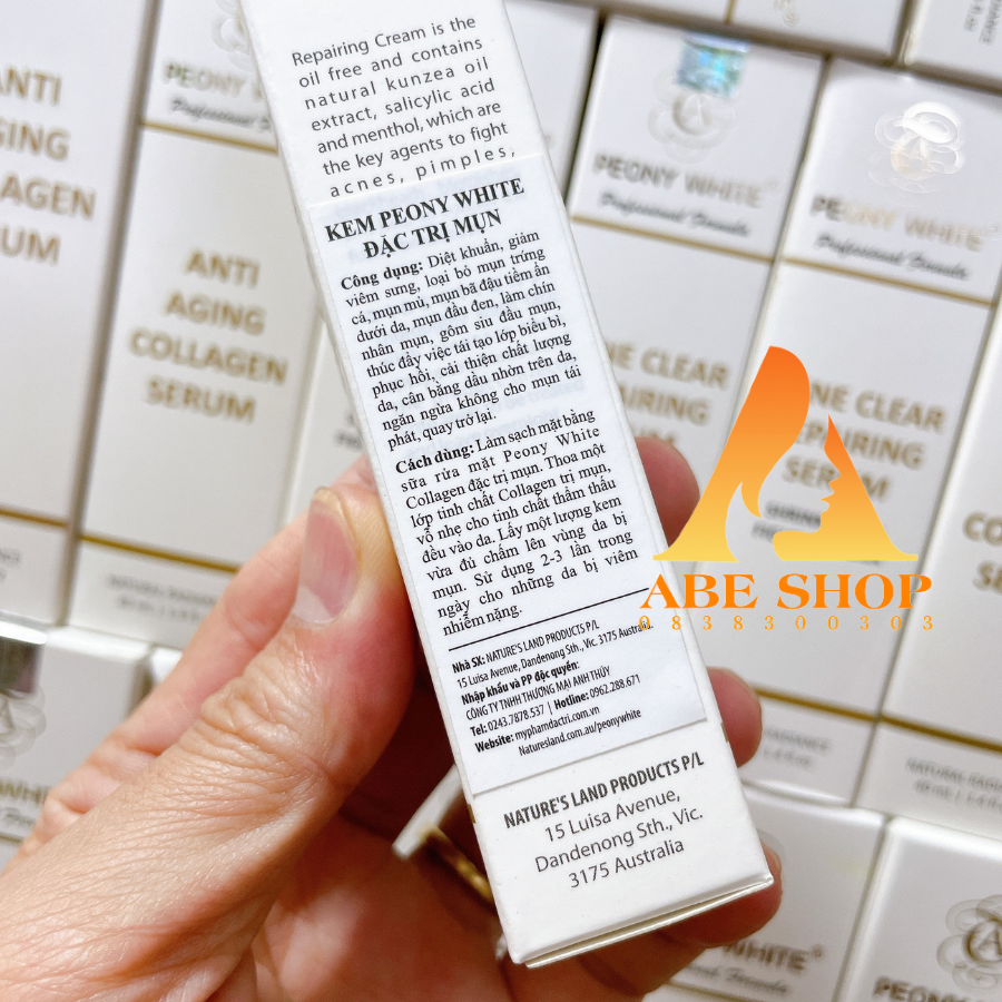 Bôi Kem Peony White Mụn - Acne Clear Repairing Cream cao cấp hàng ngày bạn sẽ tạm biệt nỗi lo về mụn mà không cần phải dùng quá nhiều loại mỹ phẩm khác nhau.