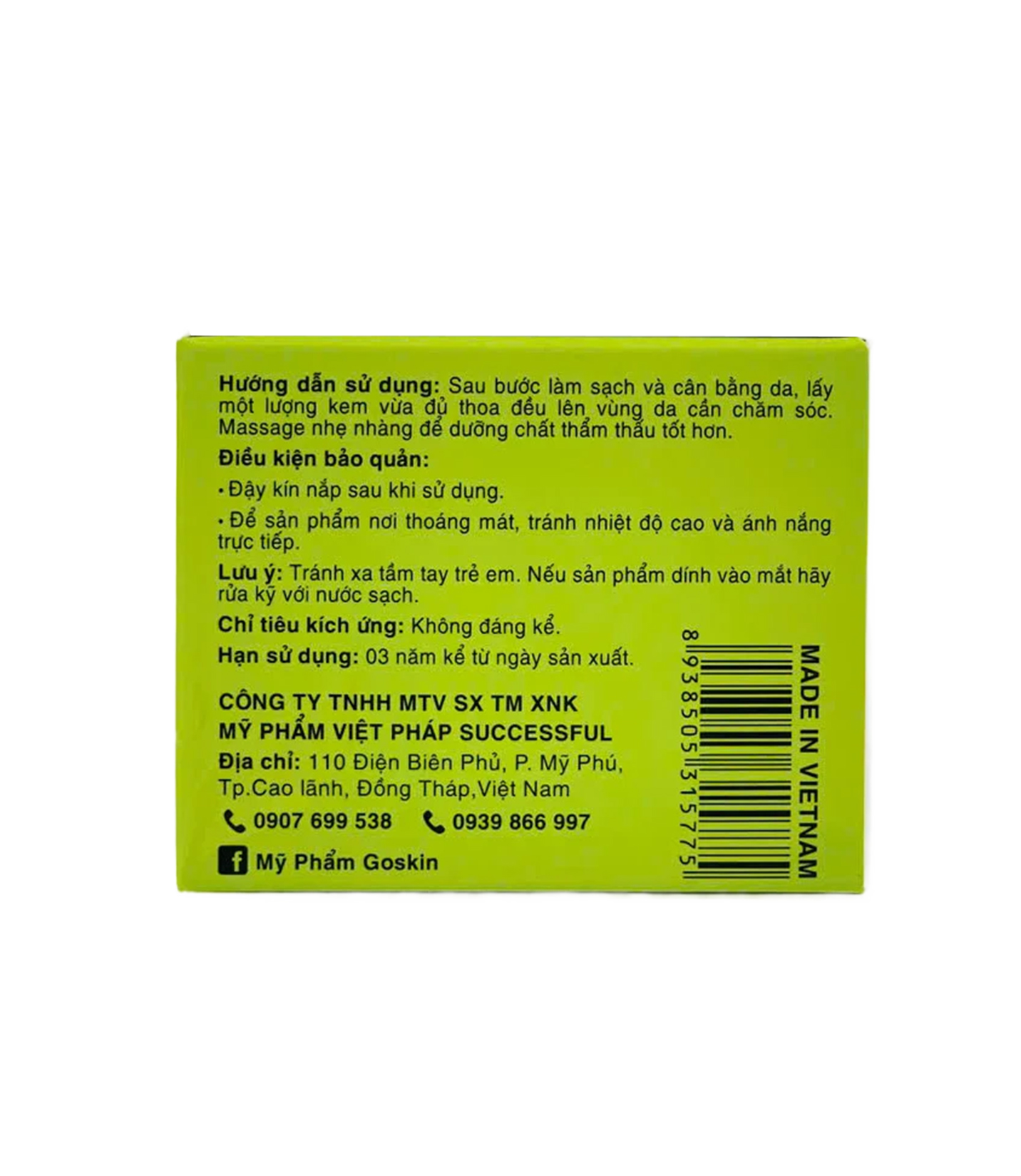 Thành phần: Vaselin, Ethylhexyl Palmitate, Glyceryl Stearate, Titanium Dioxide, Pearl Powder (Ngọc Trai), Betaine Salicylate, Octylmethoxycinnamate, Phaseolus Radiatus Seed and Oat Meal Extract, Tocopheryl Acetate, Parfum, Co-Enzyme Q10, SI-2 YELLOW LLXLO, Methylparaben, Propylparaben, Snail Secretion