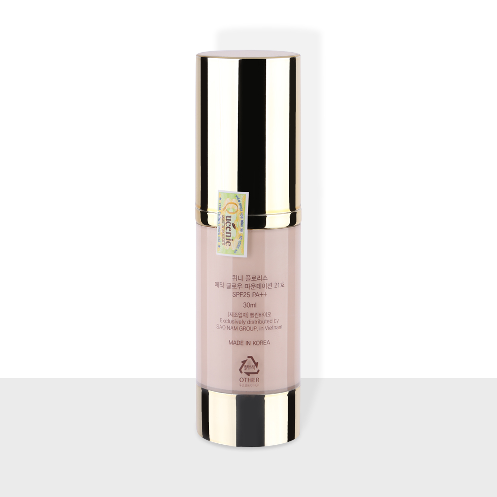 Kem nền trang điểm chống nắng SPF 25 PA++ Queenie - Mỹ phẩm Hàn quốc Lớp kem nền luôn mang đến hiệu quả tuyệt vời, giúp che đi những khuyết điểm trên làn da của phái đẹp, đặc biệt là đối với phụ nữ sau tuổi 25 bắt đầu xuất hiện những dấu hiệu tuổi tác không mong muốn. Lựa chọn kem nền phù hợp với mọi loại da, đặc biệt là da nhiều dầu để có lớp nền tự nhiên không khó nếu biết cách. Với thành phần Allatoin, hợp chất vitamin E và các thành phần từ thực vật tự nhiên, kem nền Queenie Flawless Magic Glow Foundation SPF 25 PA++ - Mỹ phẩm Hàn Quốc Queenie giúp: