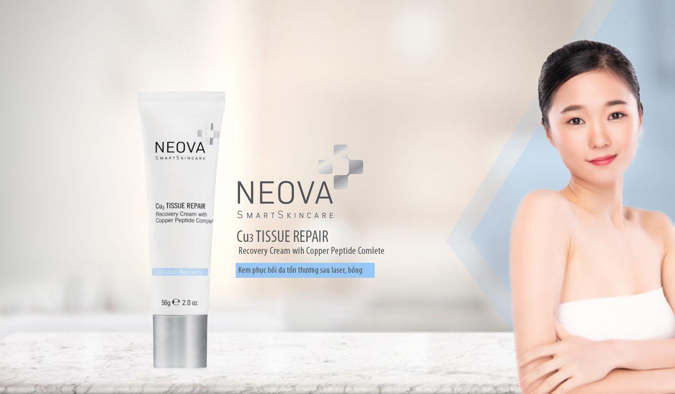 Thấu hiểu nhu cầu của khách hàng, hãng – Mỹ đã nghiên cứu và cho ra đời dòng Neova Cu3 Tissue Repair. Đây là dòng kem dưỡng siêu phục hồi da tổn thương sau laser, bỏng hay lăn kim đã nhận được sự đánh giá tích cực từ các chuyên gia cũng như những khách hàng đã sử dụng qua.