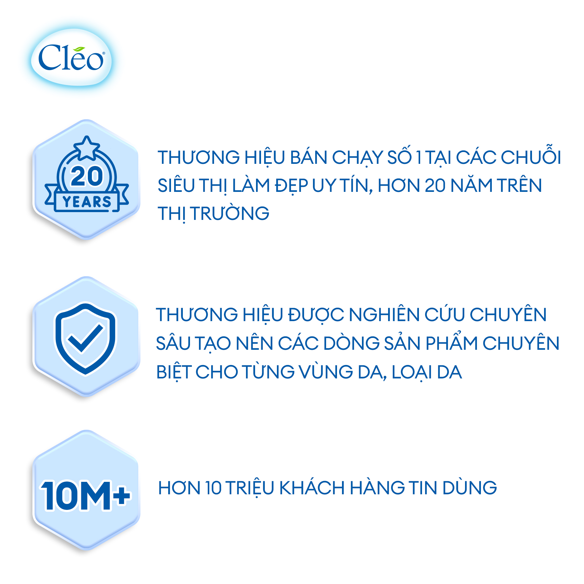 Với công thức vượt trội có khả năng tẩy SẠCH LÔNG NHANH và 100% KHÔNG ĐAU khi sử dụng. Ngoài ra, Cléo được đặc chế chứa thành phần thiên nhiên lành tính gồm chiết xuất từ trái bơ tươi thiên nhiên, vitamin E, dầu jojoba giúp DA SÁNG MỊN hơn sau khi tẩy.