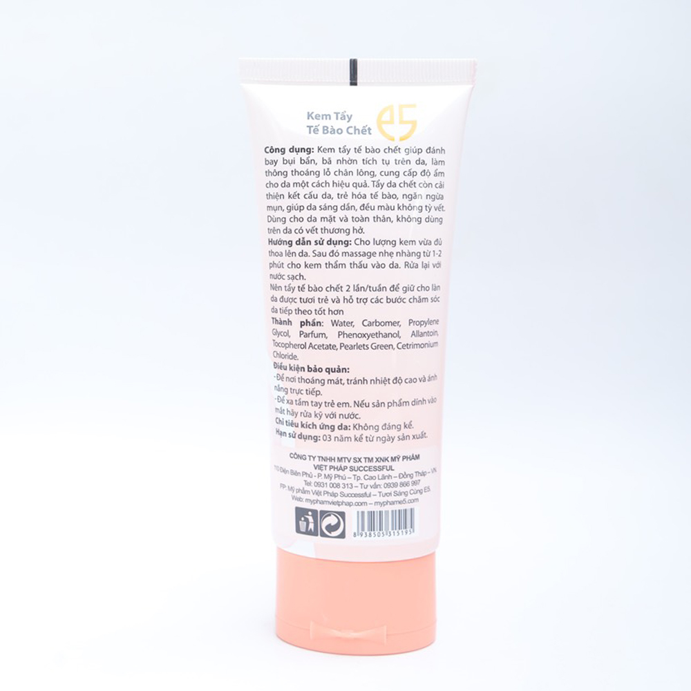 Kem Tẩy Tế Bào Chết E5 với hương thơm dịu nhẹ tạo cảm giác sảng khoái, giúp nhẹ nhàng lấy đi lớp tế bào chết trên da, những chất cặn bã lẫn độc tố trên bề
