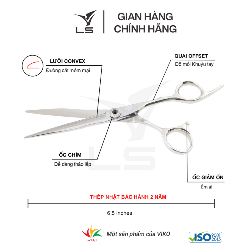 Kéo cắt tóc LS là một thương hiệu được sản xuất bởi Công ty TNHH Dụng cụ cắt Việt Hàn (Viko cutting tools Company limited) - đáp ứng đầy đủ các tiêu chuẩn quốc tế. Kéo LS thuộc dòng sản phẩm phổ thông, hướng tới đại đa số khách hàng trung bình tại các tỉnh thành trong cả nước. Với hệ thống bán hàng rộng khắp được xây dựng trong 14 năm phát triển, Kéo LS luôn nỗ lực phục vụ khách hàng một cách thuận tiện nhất. THÔNG TIN SẢN PHẨM KÉO CẮT TÓC LS FA13/6.5