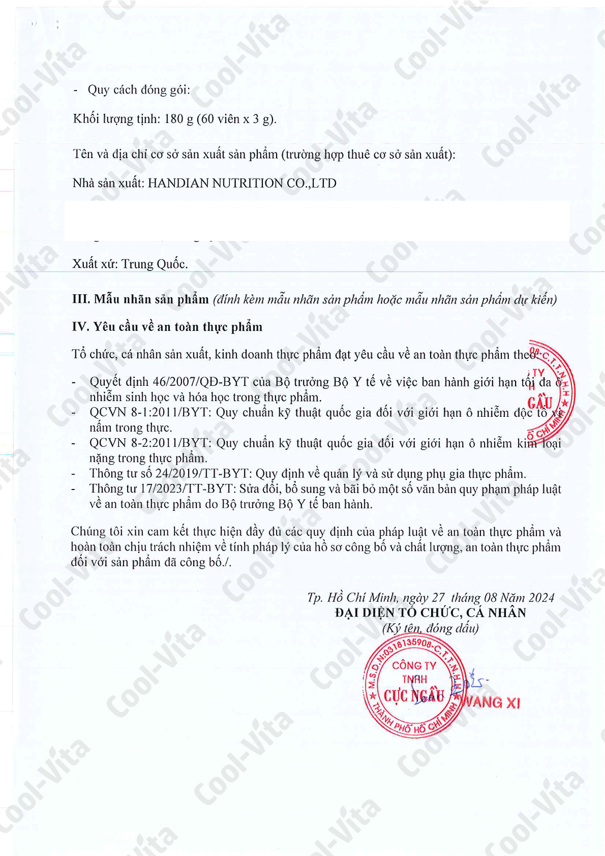 • Nhai kỹ trước khi nuốt.   Lưu ý: Đối với người đang sử dụng thuốc, nên tham vấn ý kiến của Bác Sĩ về thành phần của sản phẩm trước khi dùng. Không sử dụng trước hoặc trong khi lái xe. Không sử dụng cho người dưới 18 tuổi, phụ nữ có thai hoặc đang cho con bú. Không sử dụng sản phẩm có dấu hiệu lạ hoặc sản phẩm đã hết hạn sử dụng. Không sử dụng cho người có mẫn cảm với bất kỳ thành phần nào của sản phẩm.   Bảo quản: Bảo quản nơi khô ráo và thoáng mát, tránh tiếp xúc với nguồn nhiệt và ánh nắng mặt trời. Nhiệt độ 5-25 độ C   *Sản phẩm này không phải là thuốc và không có tác dụng thay thế thuốc chữa bệnh (Hiệu quả của sản phẩm tùy thuộc vào cơ địa của từng người mà tác dụng sẽ khác nhau) Thực phẩm bổ sung không thể thay thế cho chế độ ăn uống đa dạng và cân bằng hoặc lối sống lành mạnh. Nếu có bất kỳ phản ứng phụ nào xảy ra, hãy ngừng sử dụng sản phẩm này ngay lập tức.   Xuất xứ: Trung Quốc   Thời hạn sử dụng: 18 tháng kể từ NSX Mã sản phẩm: 769503011974