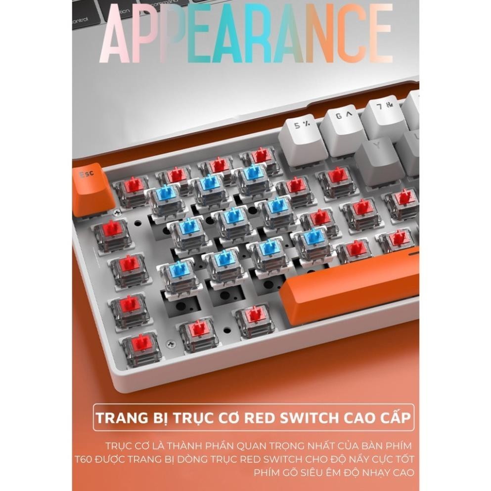 Keyboard Bàn Phím Cơ T-WOLF T60 Chính Hãng (Phím cơ, 63 key, Blue Switch, 20 chế độ LED, Kết nối cổng Type-C)