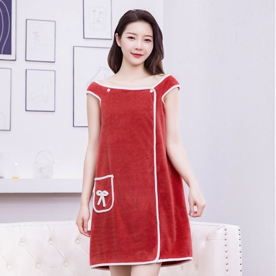 -Khăn tắm nữ xỏ tay - Áo khăn tắm nữ kiểu đầm trơn , mịn , thoáng mát , phong cách hiện đại phù hợp với mọi loại dáng