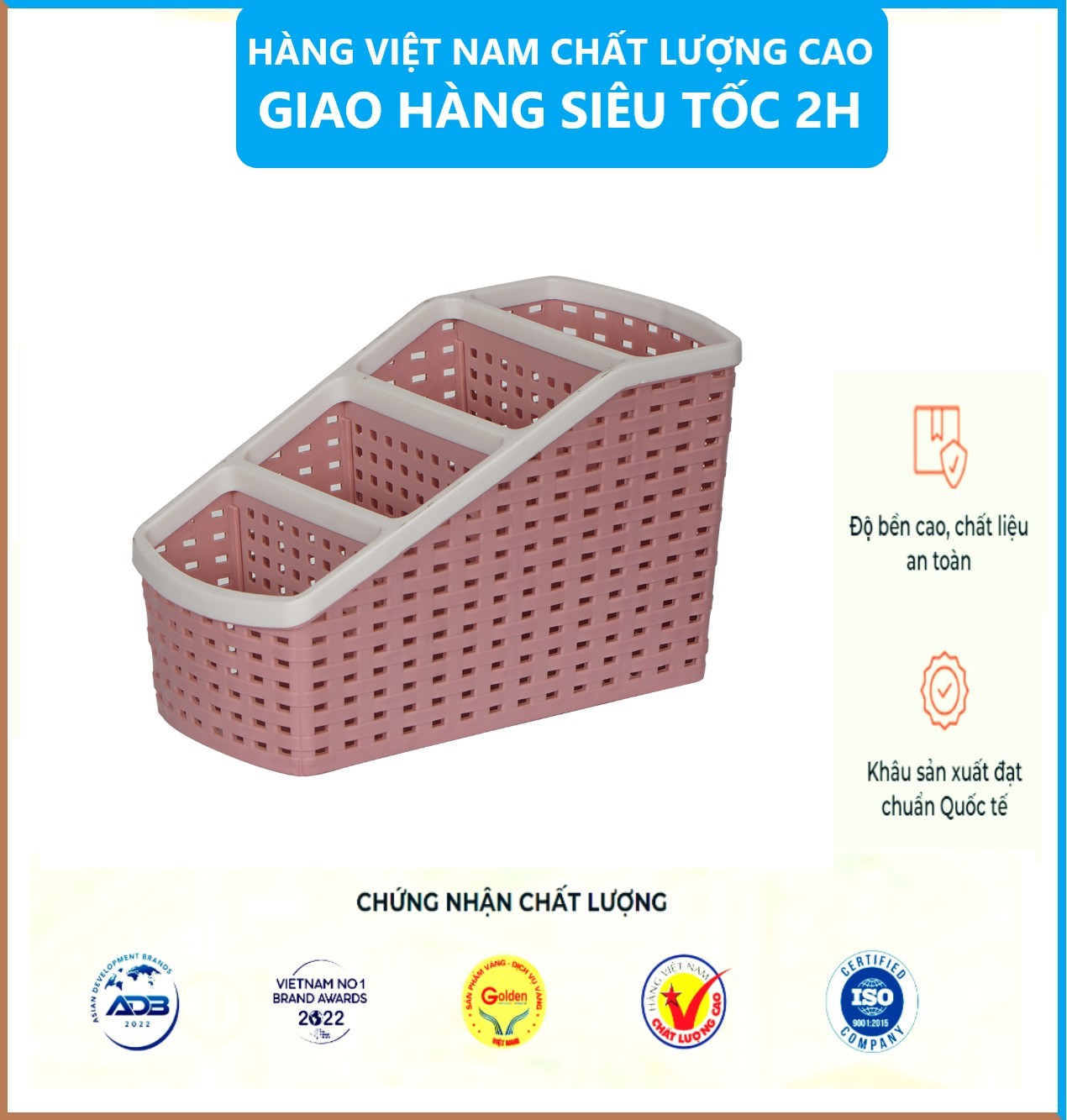 - Khay to 1115 cm Màu sắc: Hồng, Nâu, Xanh (Shop giao màu ngẫu nhiên) Chất liệu: nhựa PP Sản xuất: nhựa Việt Nhật THƯƠNG HIỆU Việt Nhật: Việt Nhật là thương hiệu gia dụng cao cấp Việt Nam của công ty TNHH sản xuất nhưa Việt Nhật , được thiết kế và sản xuất theo phong cách và tiêu chuẩn khó tính như: Hoa Kỳ, Nhật Bản, Châu Âu…. 100% sản phẩm của HOKORI được làm từ chất liệu nhựa nguyên sinh cao cấp theo quy trình chuẩn ISO 9001, không chứa BPA, đạt chứng nhận an toàn của bộ y tế, đảm bảo điều kiện xuất khẩu sang những thị trường khó tính nhất như Hoa Kỳ, Nhật Bản, Châu Âu…. Mỗi sản phẩm Việt Nhật đều được thiết kế tỉ mỉ trên các nguyên tắc thẩm mỹ và công năng sử dụng của các thị trường khó tính, đảm bảo sự thông minh, tiện ích, thân thiện với môi trường và an toàn cho cả gia đình. Hiện Việt Nhật đã có mặt tại hầu hết hệ thống các siêu thị lớn trên toàn quốc và mở rộng nhiều cửa hàng trực tiếp tại các thành phố lớn như Hà Nội, Đà Nẵng, thành phố Hồ Chí Minh. Chân thành cảm ơn quý khách!!