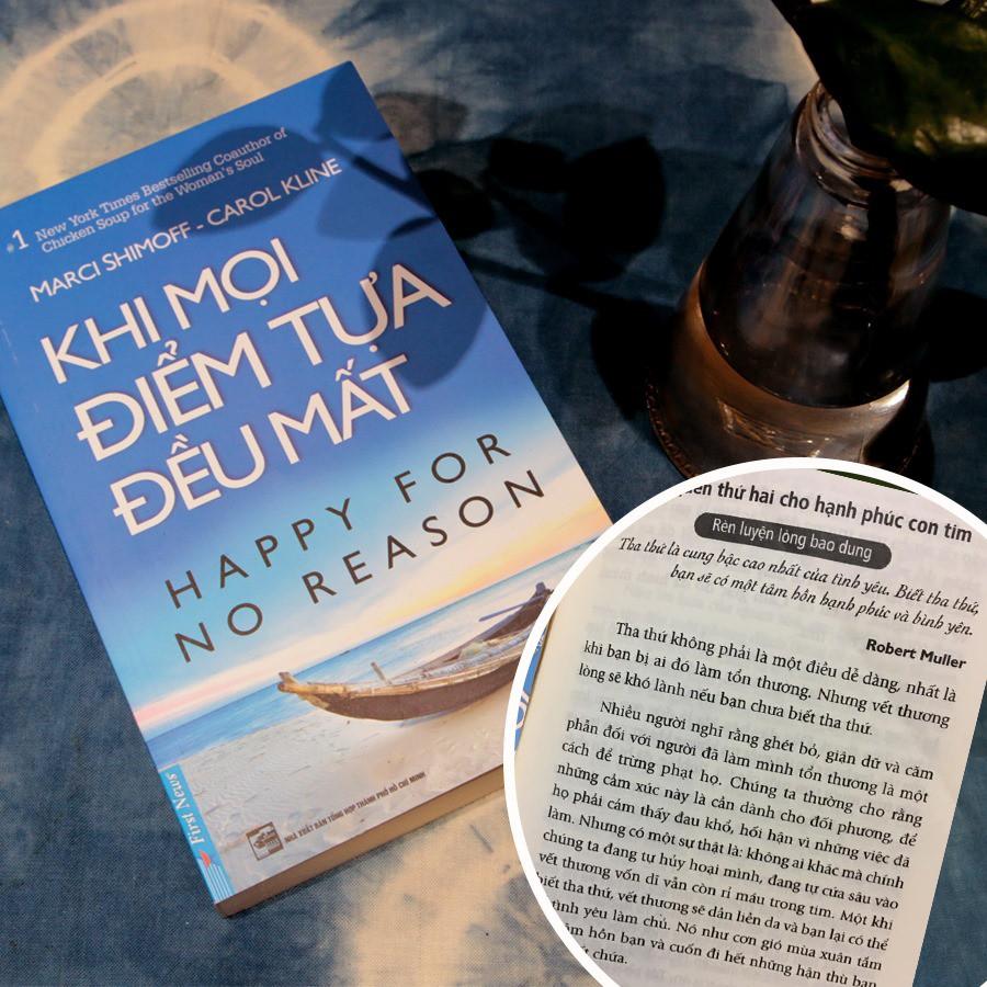Với Happy for No Reason – Khi mọi điểm tựa đều mất, tác giả Marci Shimoff đã có một cuộc cách mạng về quan niệm hạnh phúc. Trong khi phần lớn những quyển sách ở thể loại này hướng vào việc giúp con người tìm kiếm hạnh phúc từ những yếu tố bên ngoài thì Happy for No Reason lại hướng vào những yếu tố nội tâm. Nhờ vậy, bạn sẽ tìm thấy những phương thức tuy đơn giản nhưng lại rất hữu hiệu giúp bạn trải nghiệm một cảm xúc mới – hạnh phúc tự thân – bất kể mọi tác động tiêu cực từ bên ngoài. Quyển sách sẽ gửi đến bạn nền tảng cơ bản nhất, giúp bạn duy trì một trạng thái hạnh phúc bền vững và trọn vẹn.
