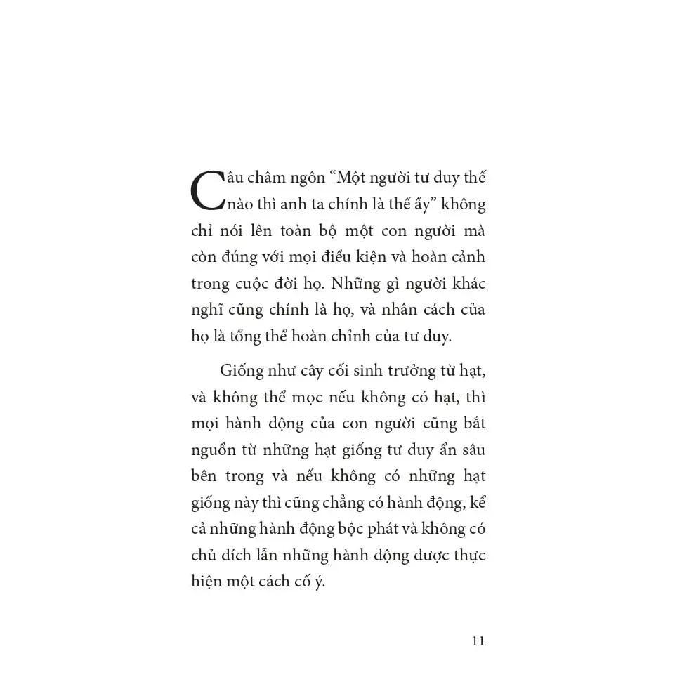 Cuốn sách khai mở cách mà tư duy định hình tính cách, hành vi, hoàn cảnh – và cuối cùng là số phận. Bằng việc làm chủ tâm trí, bạn nắm trong tay chiếc chìa khóa để: