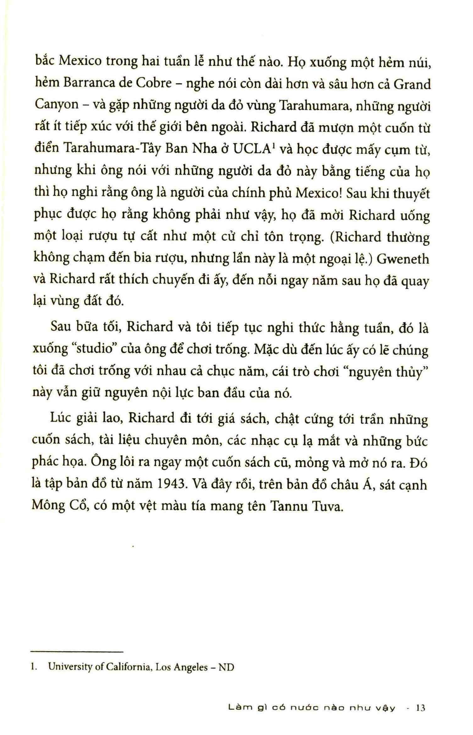 Richard Feynman, một nhà vật lý vĩ đại, một người thầy tuyệt vời, người truyền cảm hứng, một kẻ tò mò, một tay trống, một kẻ phá két, một họa sĩ… dù với cách gọi nào thì cuộc đời của ông là những cuộc phiêu lưu, những trải nghiệm nối tiếp nhau, rất tự nhiên và cũng rất lôi cuốn. Cuộc phiêu lưu cuối cùng của Feynman là cuộc phiêu lưu của ông và Ralph Leighton bắt đầu từ cái tên có cách đánh vần rất lạ của một thủ đô: Kyzyl. Họ cùng nhau tìm tòi, học hỏi ngôn ngữ, vượt qua ranh giới địa lý lẫn tư tưởng để cố gắng đến được Tuva, một đất nước nhỏ bé nằm ở trung tâm châu Á, gần như tách biệt và ít chịu ảnh hưởng bởi thế giới hiện đại, với những loài động vật kỳ lạ, những căn lều tròn, những Shaman… và giọng hát họng đặc sắc. Không ai biết trước được điều gì sẽ xảy ra, nhưng thất bại đầu tiên là việc không dám bắt đầu, Feynman đã sống đúng như vậy đến tận những năm tháng cuối cùng.