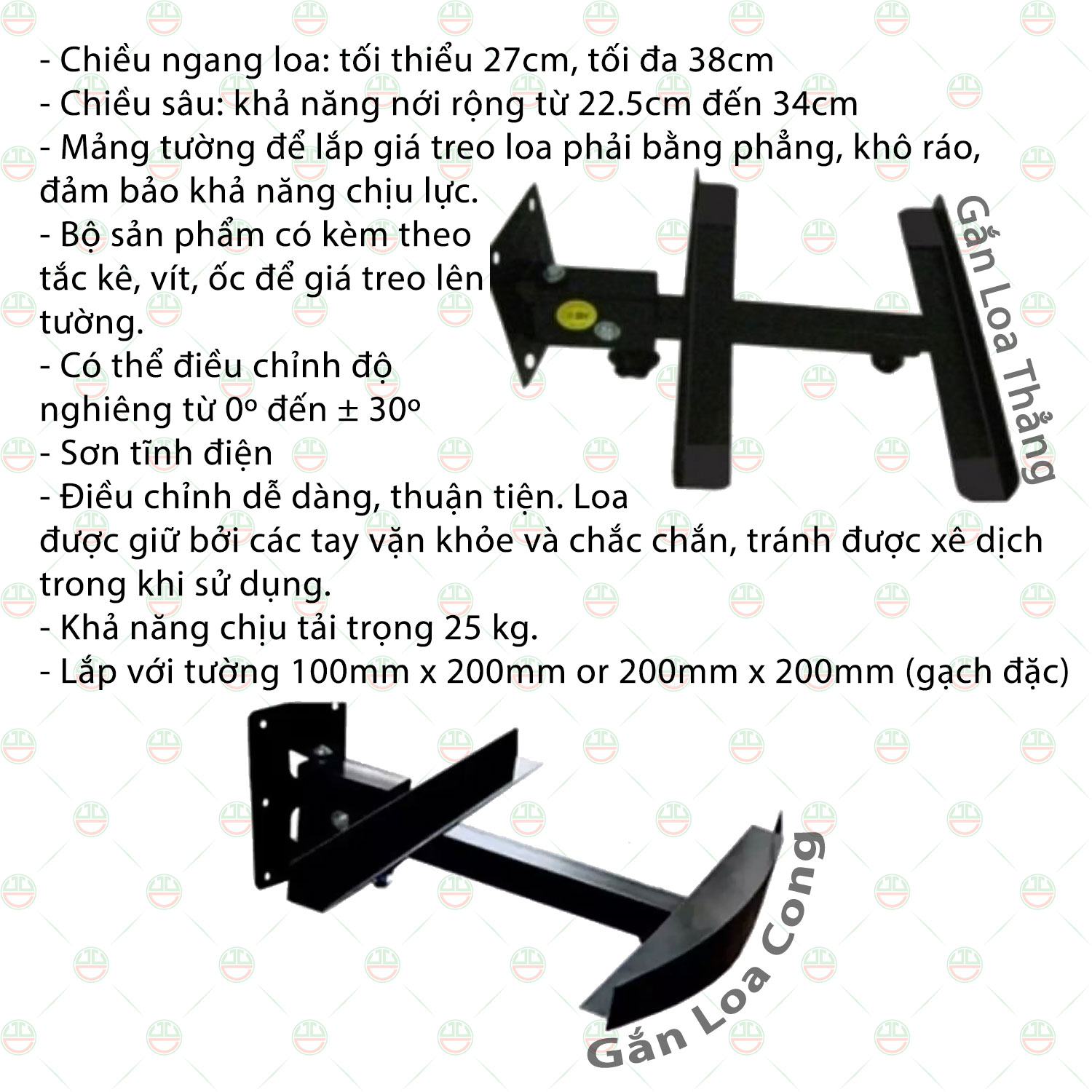 MÔ TẢ SẢN PHẨM Tải trọng tối đa cho 1 chiếc 15kg, 20kg, 25kg, tối đa 30kg. Cho phép điều chỉnh thẳng hoặc nghiêng loa 30 độ (trúc hướng nghe tối đa 30 độ theo