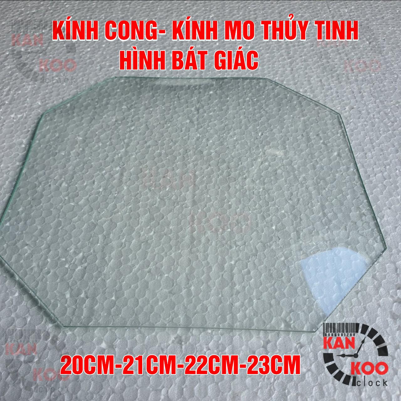 Mặt kính cong- kính thủy tinh mo HÌNH BÁT GIÁC ĐỨNG nhiều cỡ từ 21cm đến 23cm dùng cho đồng hồ treo tường, đồng hồ cổ, đồng hồ cơ các loại:
