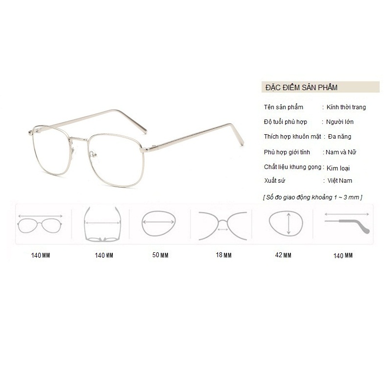 Gọng kính bằng chất liệu kim loại cao cấp, bền và tạo cảm giác thoải mái cho người sử dụng Có thể thay tròng 0 độ/cận/viễn/loạn theo nhu cầu sử dụng. Dáng Unisex phù hợp