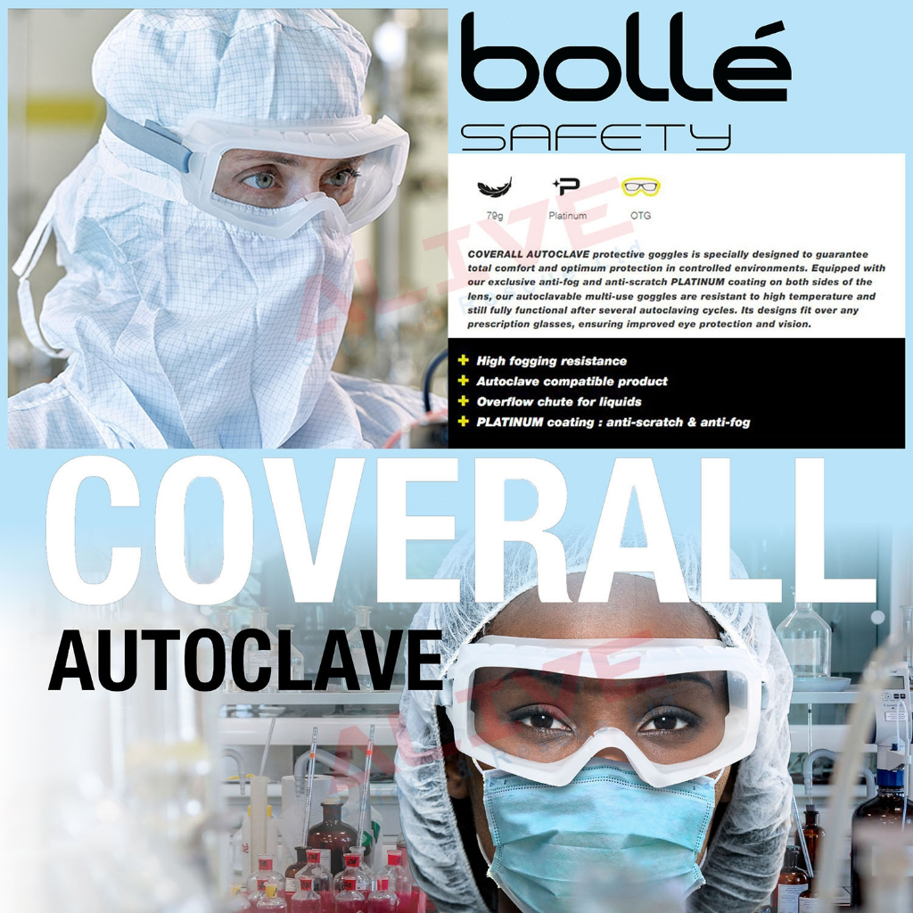 ✨Kính Goggle BOLLE COVERALL AUTOCLAVE COVACLAVE, Tròng Trong Suốt (Có thể hấp tiệt trùng, chống đọng sương)