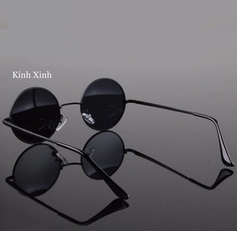 Kính râm Mắt Tròn Tròng Thủy Tinh Cao Cấp Gọng Kim Loại Chống Nắng UV Chất liệu: Gọng Kim loại mạ xi cao cấp, bền màu - Tròng Thủy Tinh Kim Cương Chống Vỡ Tròng