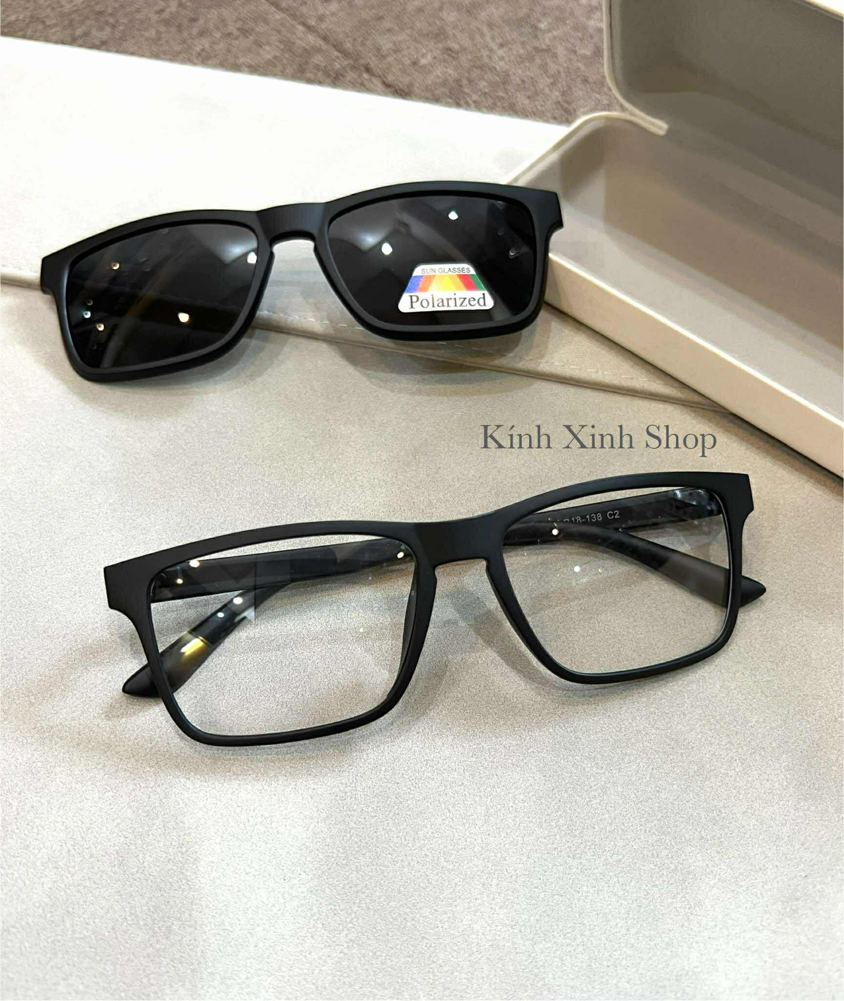 - Kính Râm Cận, Gọng Kính Cận, Kính Mát 2 Tròng 2in1 Mắt Vuông Gọng Ultem