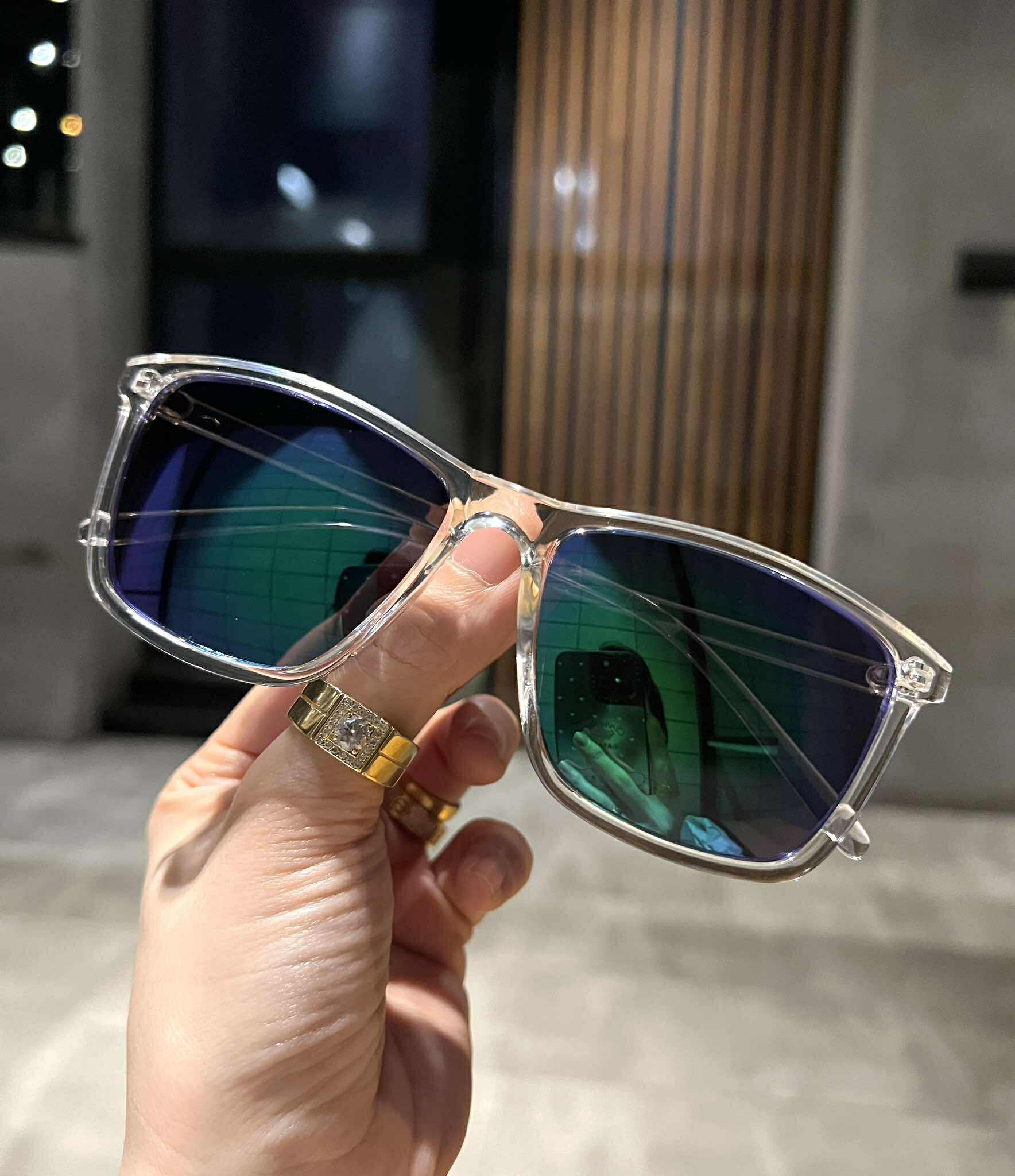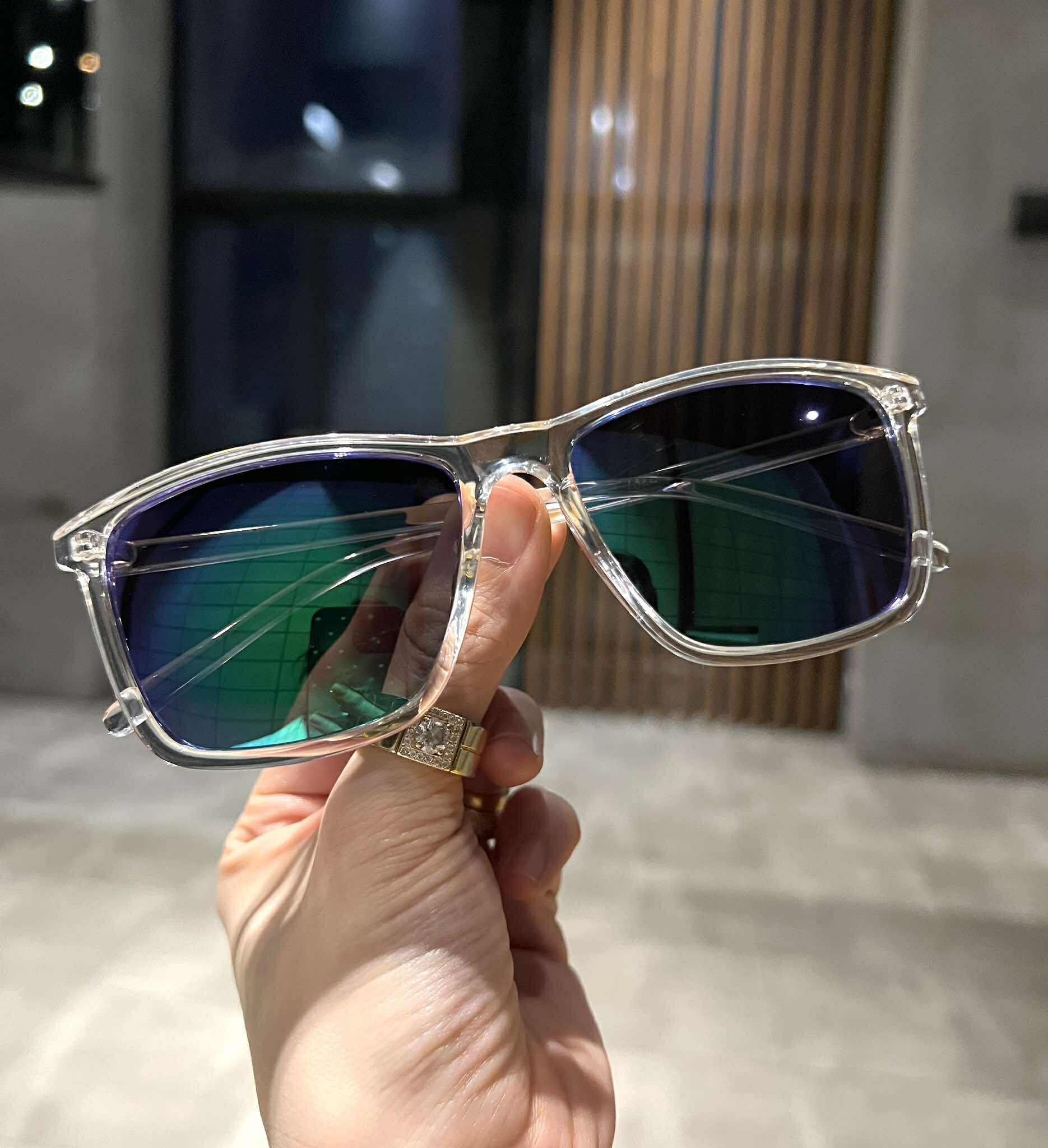 ✨Kính râm Mắt vuông basic gọng trong suốt Mắt xanh gương chống nắng
