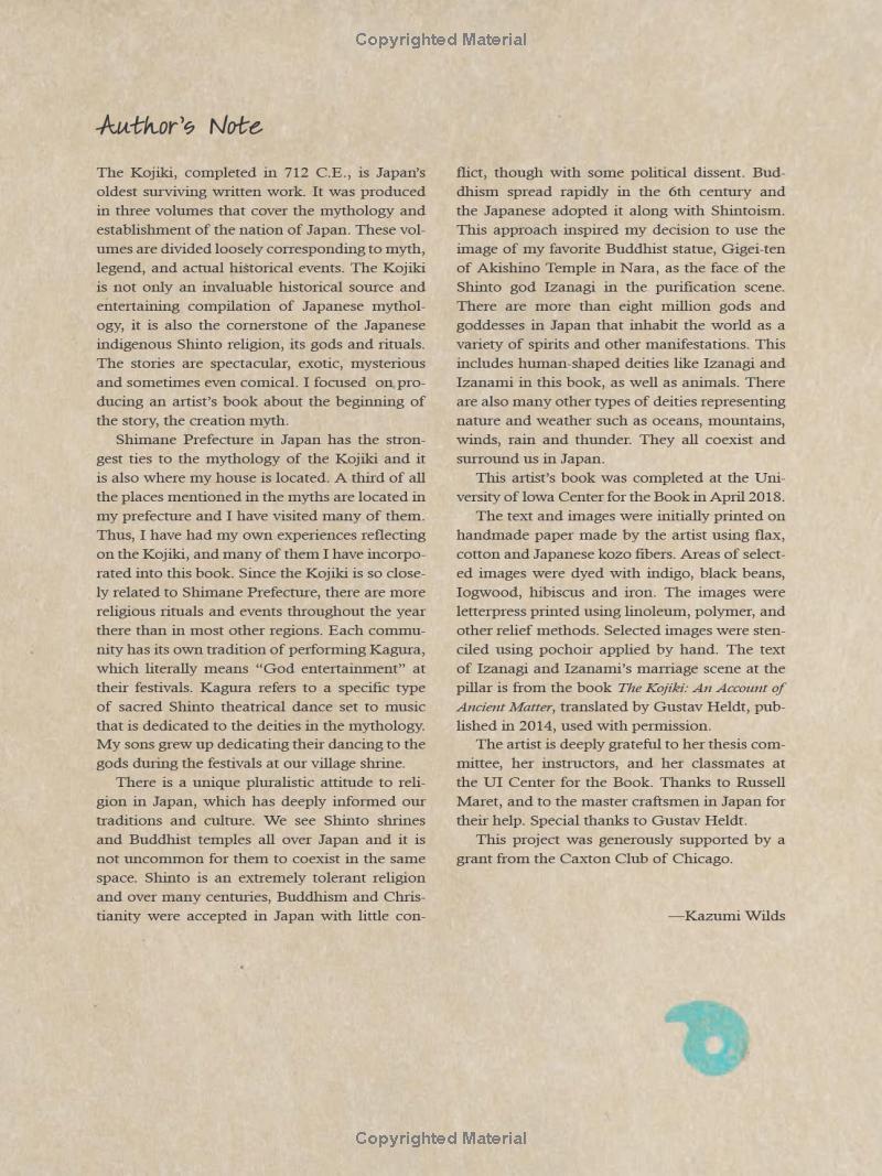 Like all creation myths from around the world, the Kojiki story occupies a treasured place in the nation's literature and collective imagination. Kazumi Wilds's striking illustrations capture the drama and intensity of a mythic tale where chaos and demons are unleashed and where darkness is slowly pushed back by the righteous, as good prevails over evil.