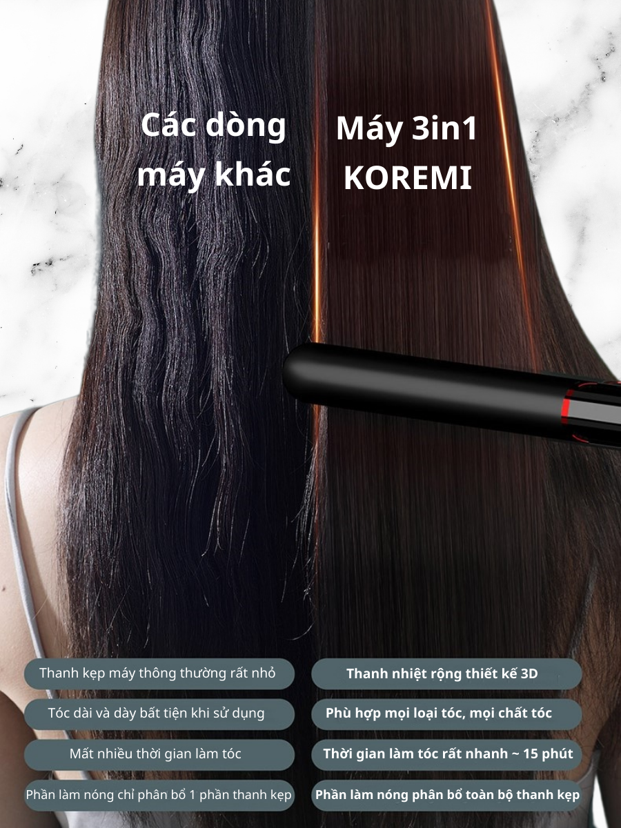 ✨KOREMI Máy uốn duỗi 3in1 Duỗi Thẳng, Uốn Xoăn, Làm Phồng Tóc X3 ion âm, Giúp tóc suôn mượt Hàng Chính Hãng