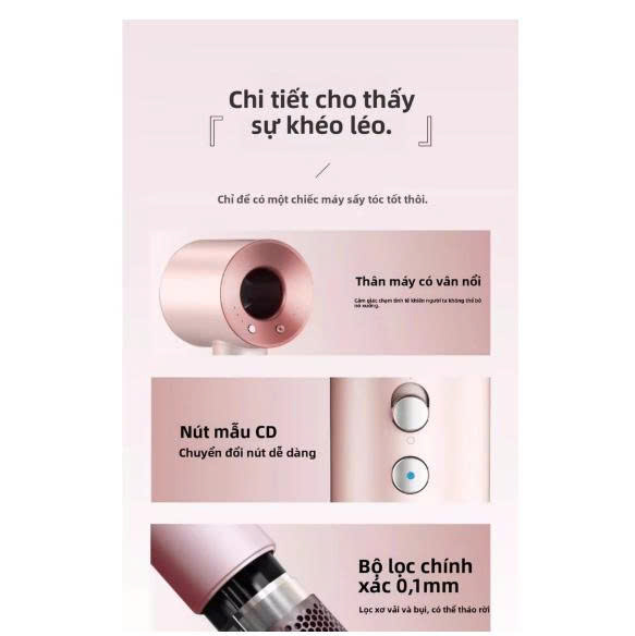 MÁY SẤY TÓC KHÔNG LÁ CAO CẤP – SẤY NHANH, KHÔNG HƯ TÓC, THIẾT KẾ SANG TRỌNG Nâng tầm mái tóc – Biến mỗi lần sấy thành trải nghiệm chăm sóc chuyên nghiệp tại