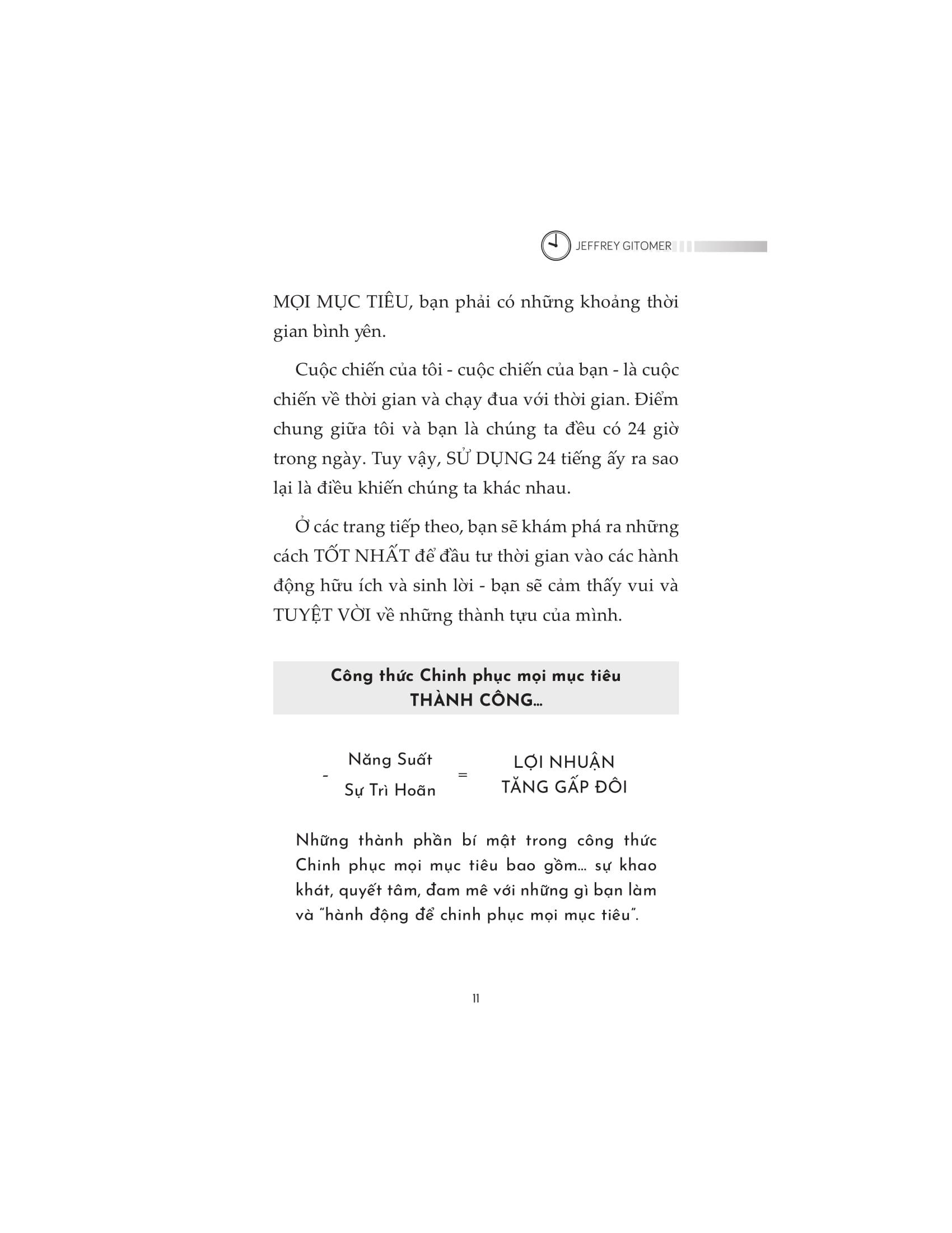 Cuốn sách cung cấp cho bạn kế hoạch toàn diện, từng bước để đạt được năng suất tối đa. Tác giả của những cuốn sách bán chạy nhất Jeffrey Gitomer sẽ hướng dẫn bạn từng khía cạnh của quy trình loại bỏ trì hoãn, từ thái độ, khao khát và quyết tâm đến nghệ thuật kiên trì và làm tới cùng. Dễ đọc và lôi cuốn, cuốn sách chỉ cho bạn những cách tốt nhất để đầu tư thời gian vào những hành động giá trị và mang lại lợi nhuận. Khi vượt qua được tâm lý lười biếng để hành động ngay lập tức, bạn sẽ có thể: