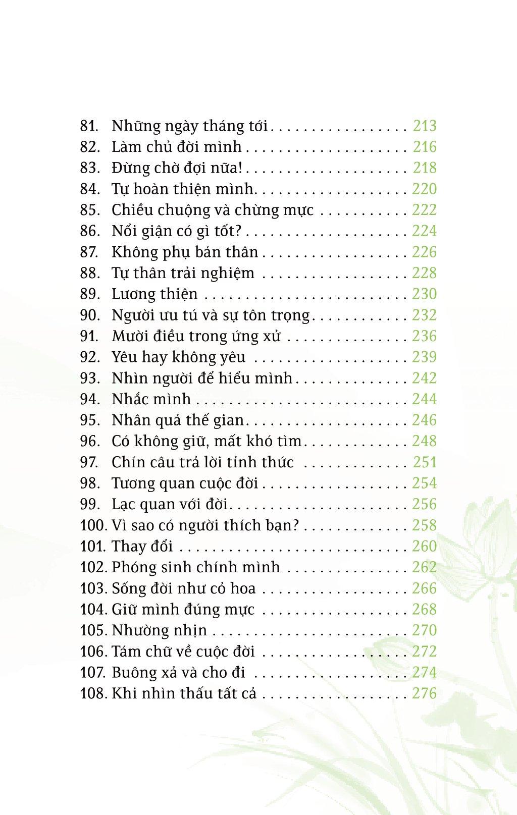 1/Chánh niệm trong từng khoảnh khắc Làm sao để ta có thể tận dụng tối đa thời gian của bản thân, sống một cuộc đời có mục đích, phẩm giá và được mọi người ủng