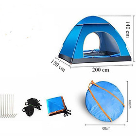 Kích thước: 2m x 1.5m x 1.4m Khung lều làm từ sợi thủy tinh tổng hợp có dẻo dai tạo độ bền sử dụng lâu dài cho sản phẩm Mặt ngoài lều được tráng 1 lớp bạc giúp chống tia tử ngoại rất tốt Thiết kế nhỏ gọn, sức chứa 2-3 người giúp bạn dễ dàng mang theo Đường chỉ may cẩn thận, chắc chắn Lều có sẵn các phụ kiện cố định lều xuống đất khi thời tiết có gió to Cửa sổ lưới kéo bên trong Tháo lắp dễ dàng, nhanh chóng Khả năng kháng nước và chịu lực tốt . Thích hợp cho 2-3 người sử dụng Cách lắp đặt Lều Cắm Trại Lều Du Lịch Tự Bung Gấp Gọn Chống Nước 4-6 Người ( 2 X 1.5 X 1,35 m) : Trải lều ra trên mặt đất bằng phẳng Nối các thanh rời thành 2 thanh dài sau đó luồn qua đường may sẵn hình chữ X Tại 4 góc lều tra đầu thanh vào lỗ nhựa ở các góc Buộc dây ở đỉnh lều để đỉnh lều cố định Cắm đinh vào 4 góc lều để cố định lều
