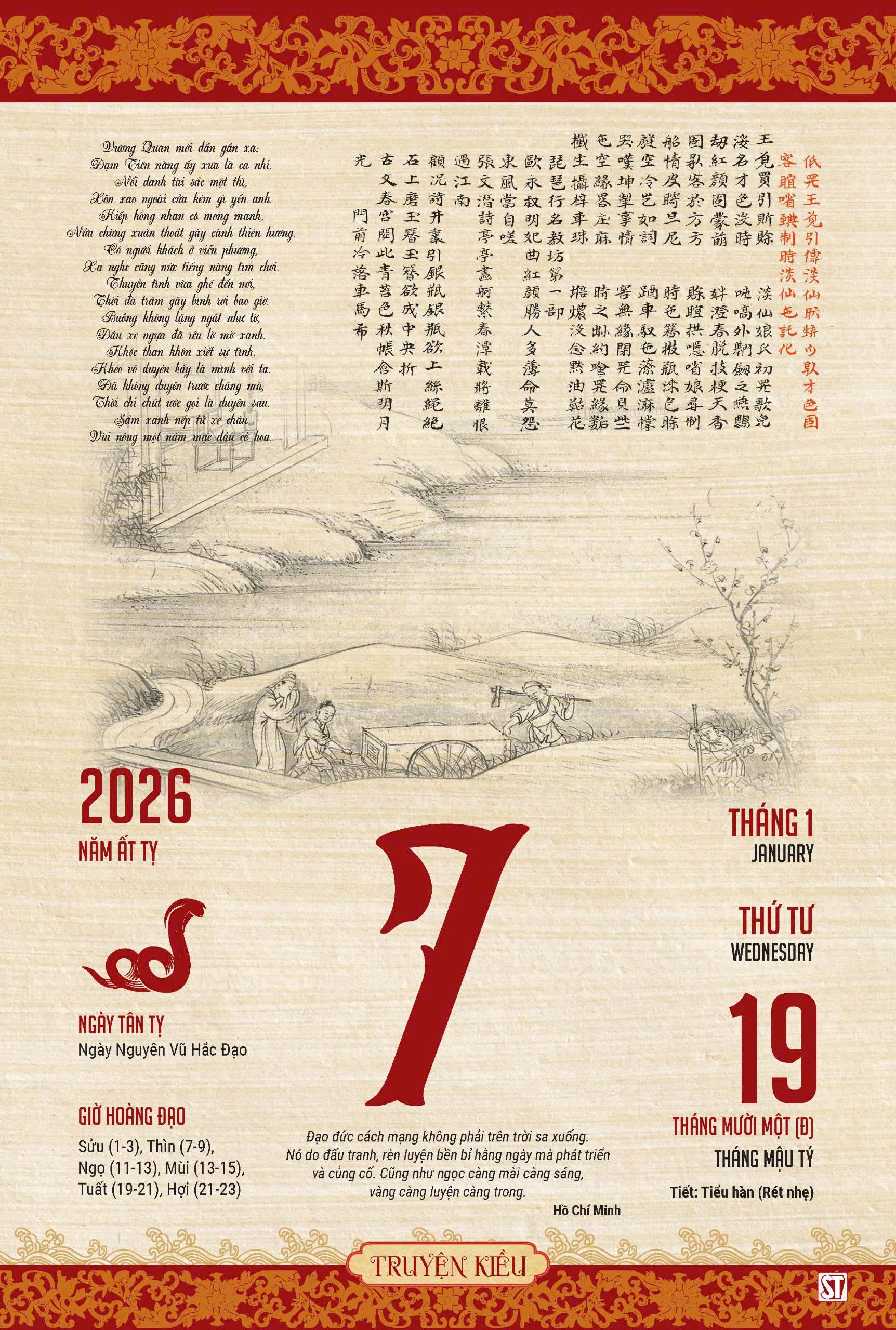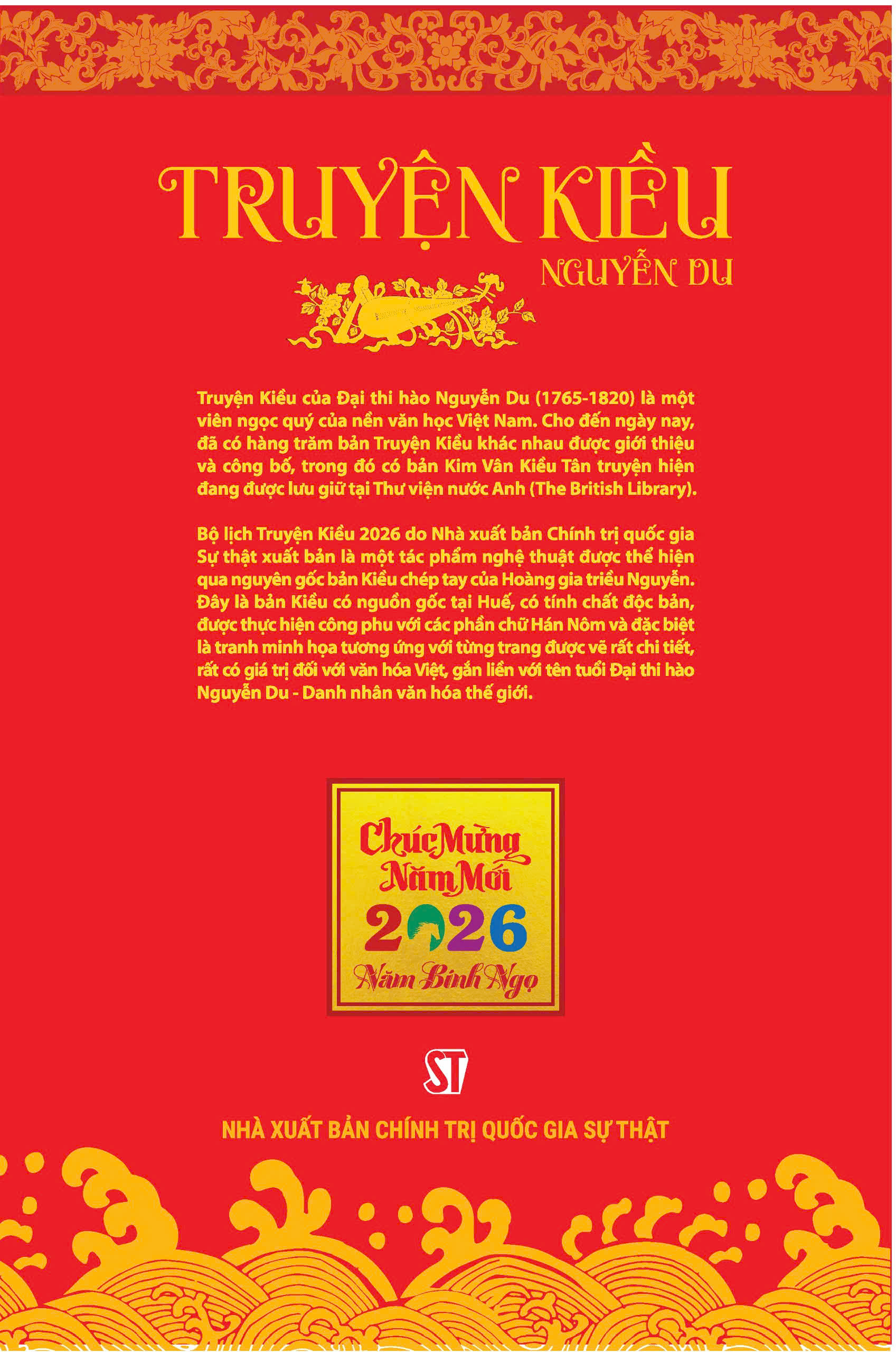 Lịch bloc "Truyện Kiều" phiên bản 2026 là một sản phẩm văn hóa độc đáo, kết hợp giữa lịch truyền thống và giá trị bất hủ của kiệt tác "Truyện Kiều" của Đại thi hào Nguyễn Du (1765-1820).