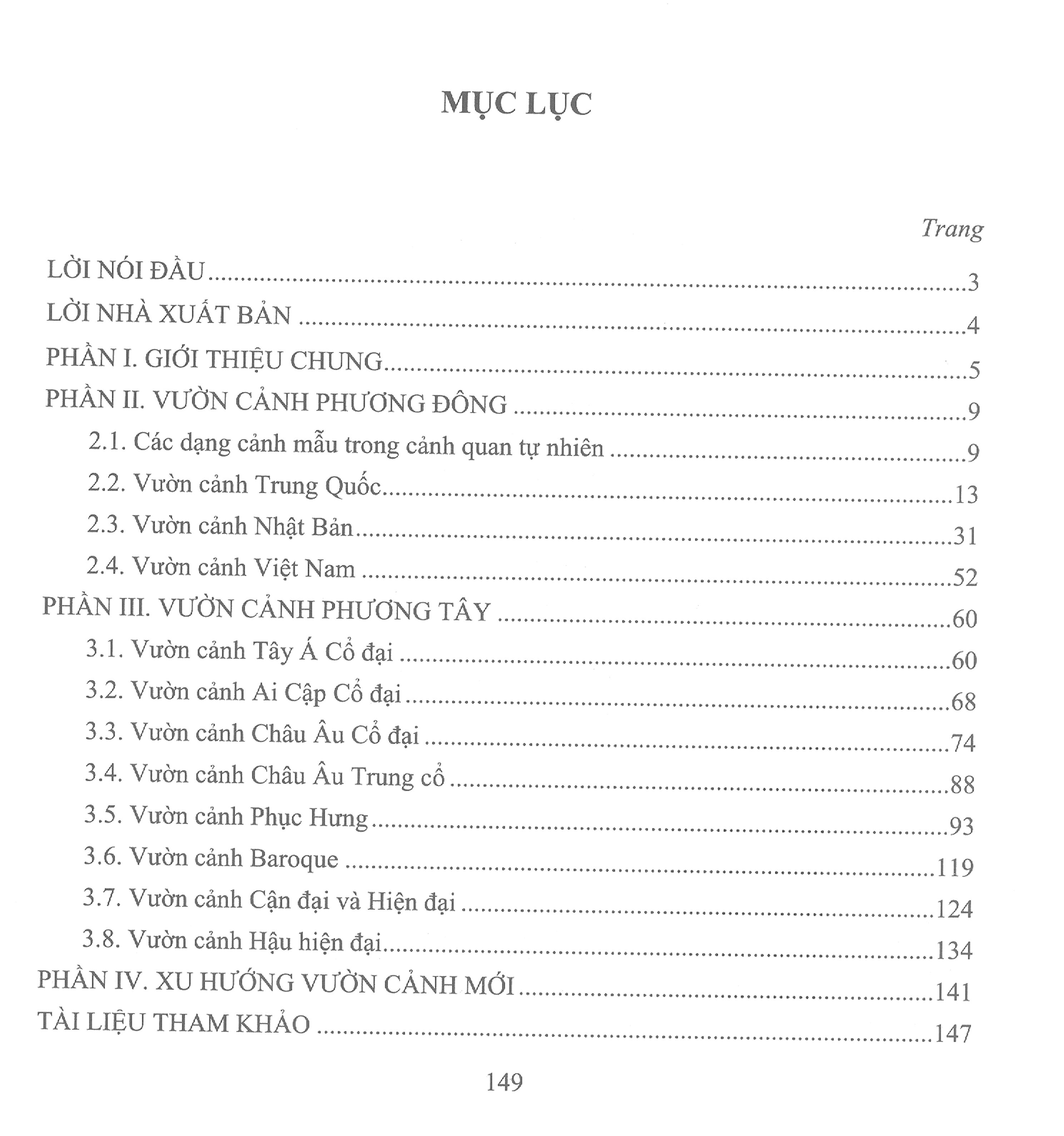 Cuốn sách “Lịch sử vườn cảnh” được biên soạn nhằm cung cấp các thông tin về điều kiện, lịch sử hình thành và phát trin, những nét đặc trưng, các nguyên tắc cơ bản trong bố cục, tạo hình và tô chức không gian của các loại hình vườn cảnh tiêu biêu, có ảnh hưởng nhiều tới nhận thức và giá trị thẩm mỹ của cảnh quan trên Thế giới và Việt Nam.