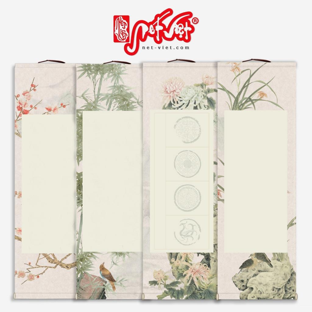 Liễn giấy bồi trục treo in viền hoa chuyên dùng để viết thư pháp. Giấy dày, in tranh hoa điểu sắc nét, thẩm mỹ. Kích thước 34 x 92 cm, ruột trắng 28x61.5 cm Sản