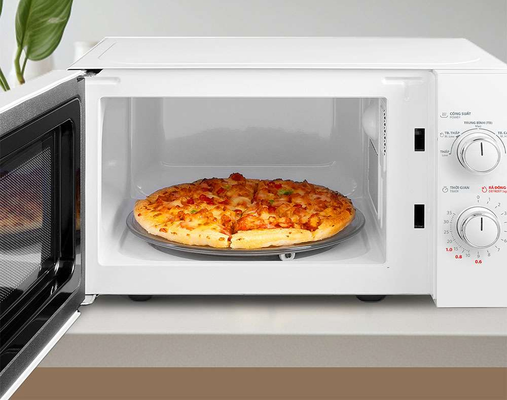 Tính năng nổi bật : – Bảng điều khiển cơ học dễ dàng sử dụng – 6 mức công suất linh hoạt cho ngưởi sử dụng – Tích hợp chức năng nướng tiện dụng – Thiết kế sang trọng hiện đại. THÔNG SỐ KỸ THUẬT Đường kính đĩa 24,4cm Công Suất Đầu Ra (vi sóng) 700W Công Suất Đầu Vào(vi sóng) 1100W Điện Áp 220v-50hz Dung Tích Lò Vi Sóng 20L Trọng lượng khoảng 10,5 kg Công Suất Nướng 720W Kích thước bề ngoài (cm) 47 x 38 x 28.5
