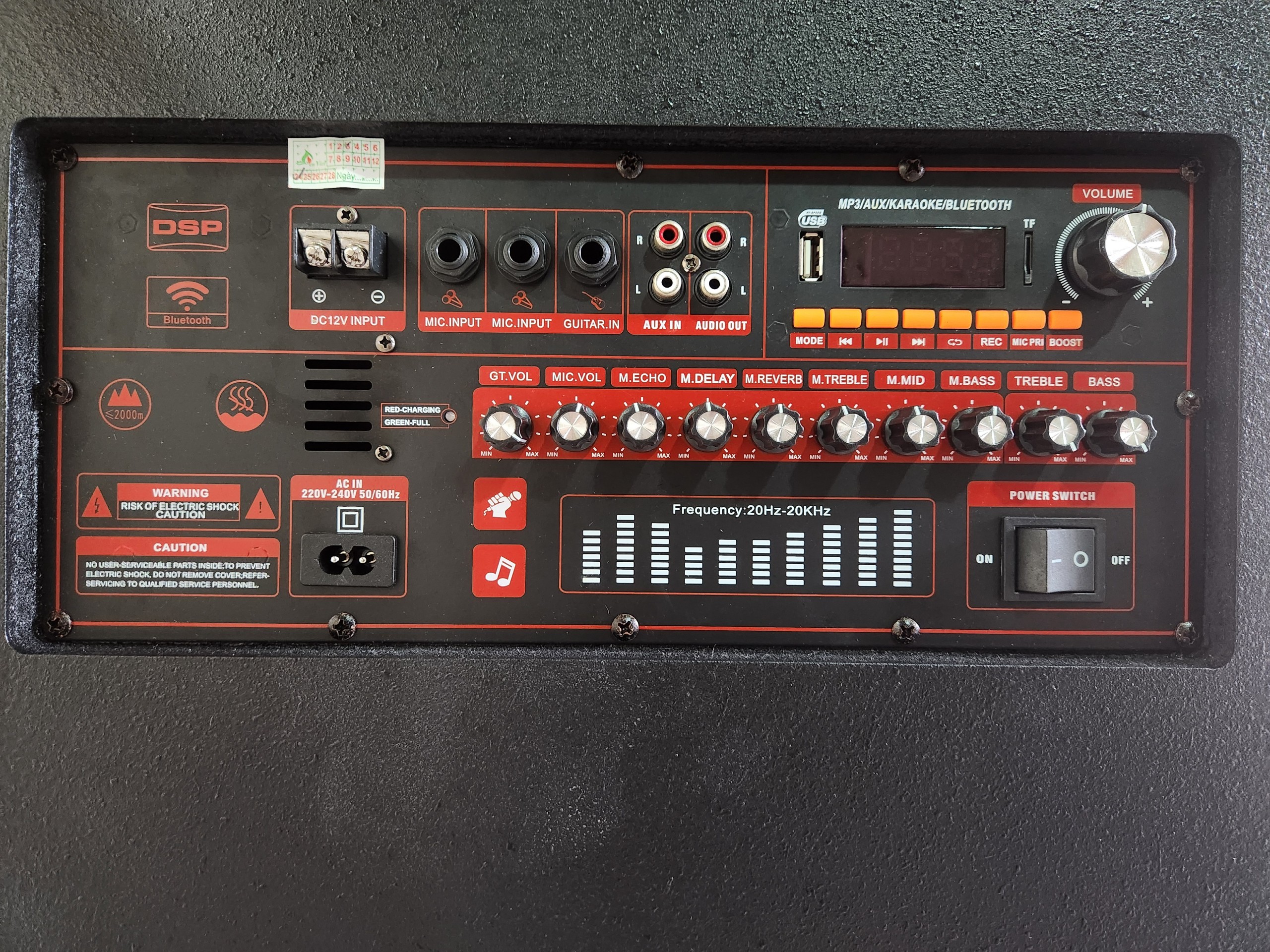 _Nguồn DC 12V bat in _ Bass 2T x 2, Treble x 2, mid x 2 _ Sử dụng bo CLASS D _Hỗ trợ USB, HDMI, Bluetooth, guitar in, mic in _Phụ kiện 2 mic