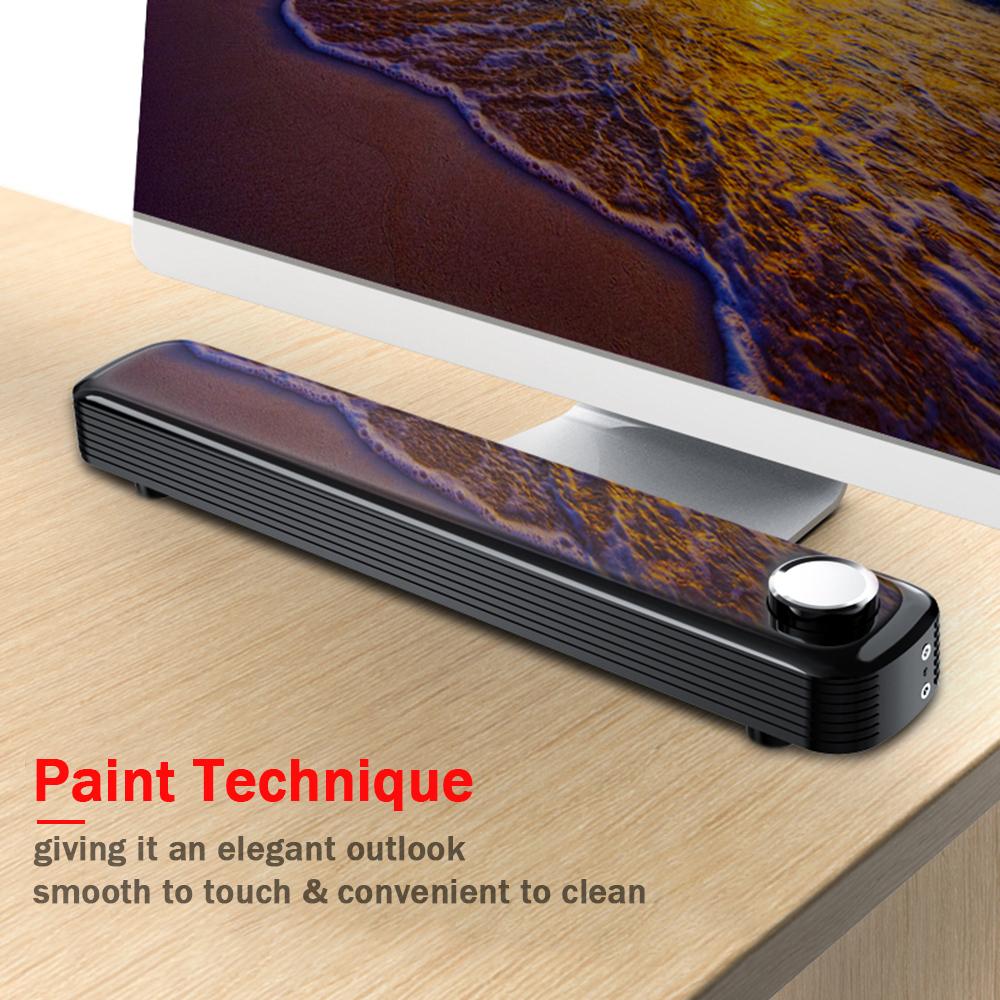 Overview: If you are finding a characteristic soundbar, this product is your dreaming item. Sound Bar uses unique noise reduction technology to equip your computer with high-quality full-range speakers. It is loud and clear, with